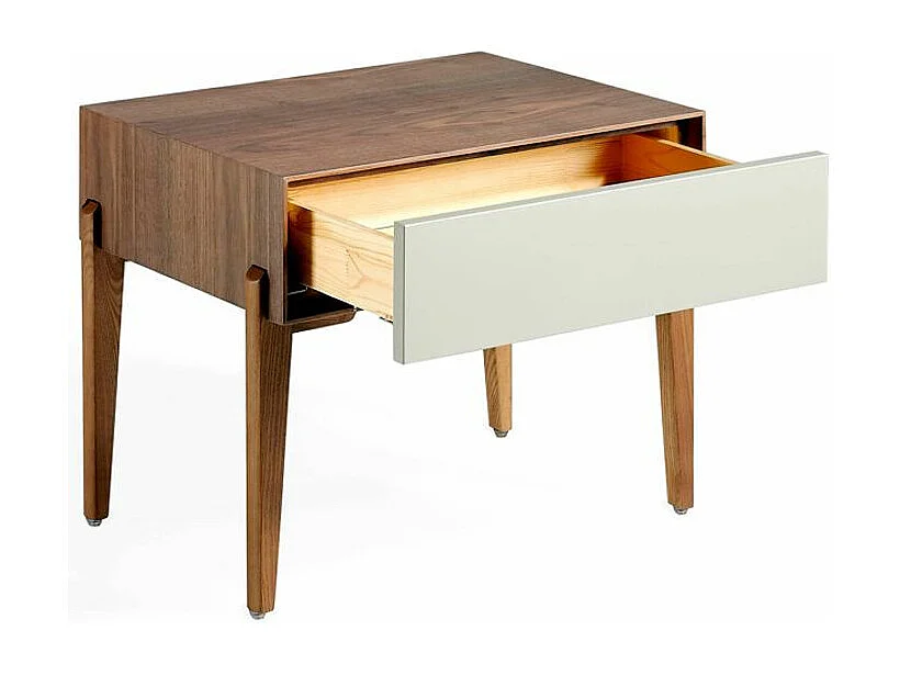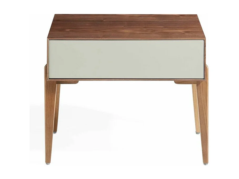 Chevet 1 tiroir bois laqué et bois noyer Muza-Couleur Dessert
