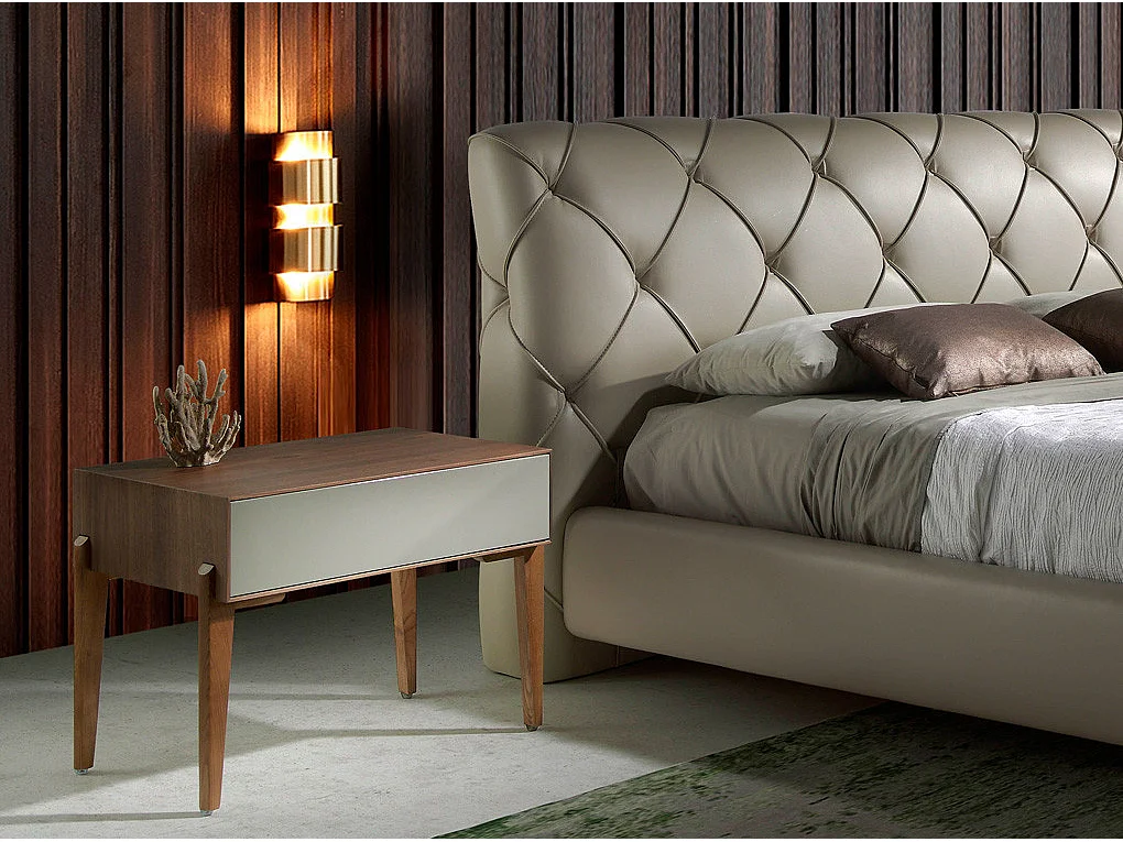 Chevet 1 tiroir bois laqué et bois noyer Muza-Couleur Hermes