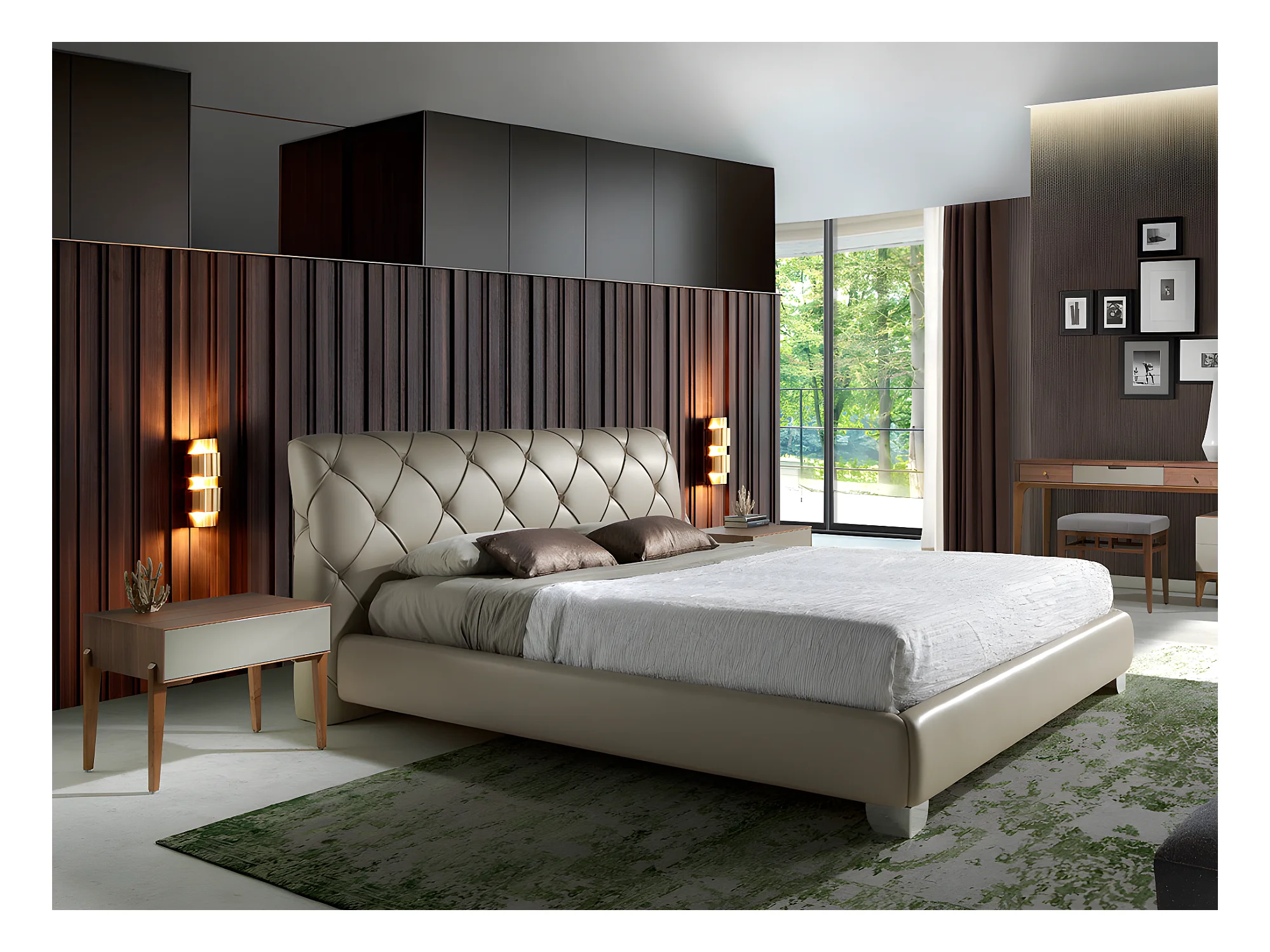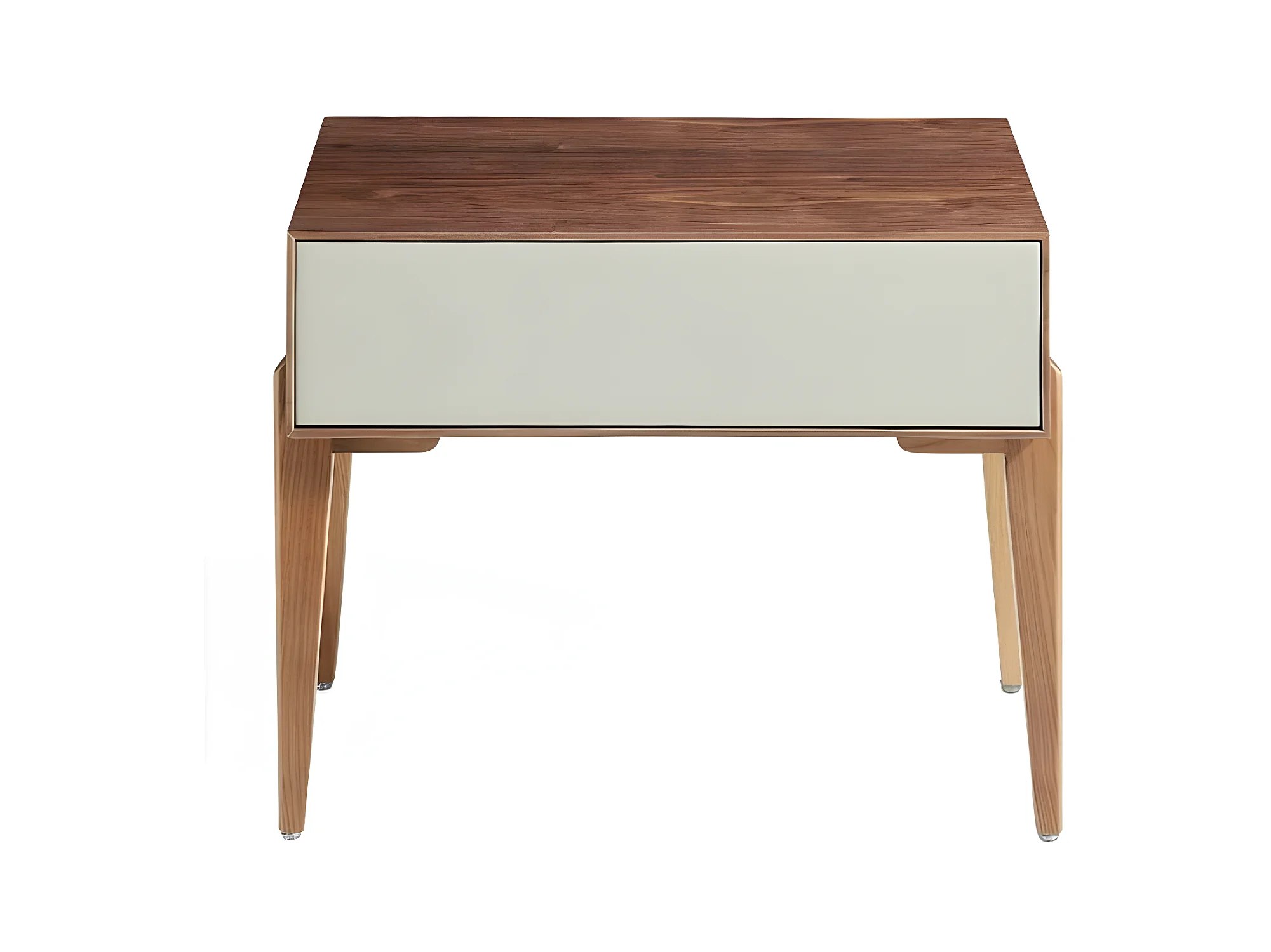 Chevet 1 tiroir bois laqué et bois noyer Muza-Couleur Pearl