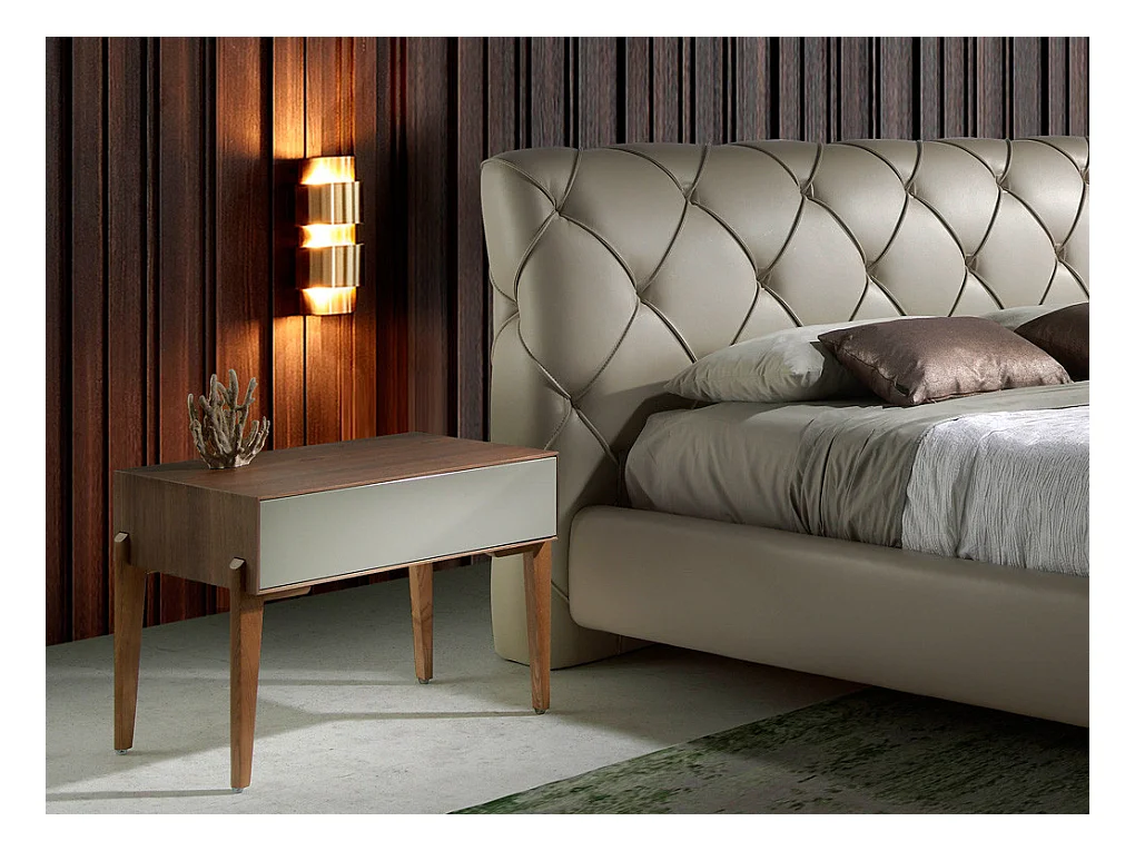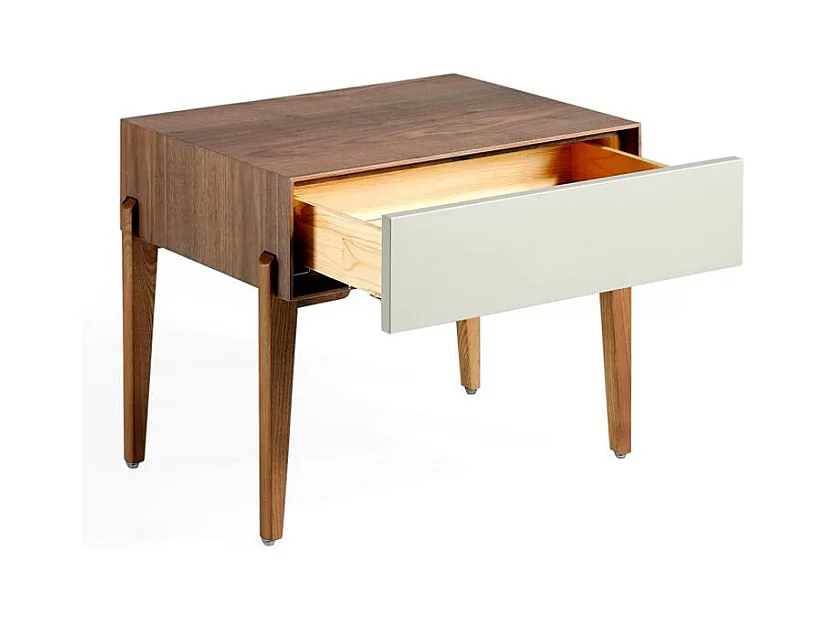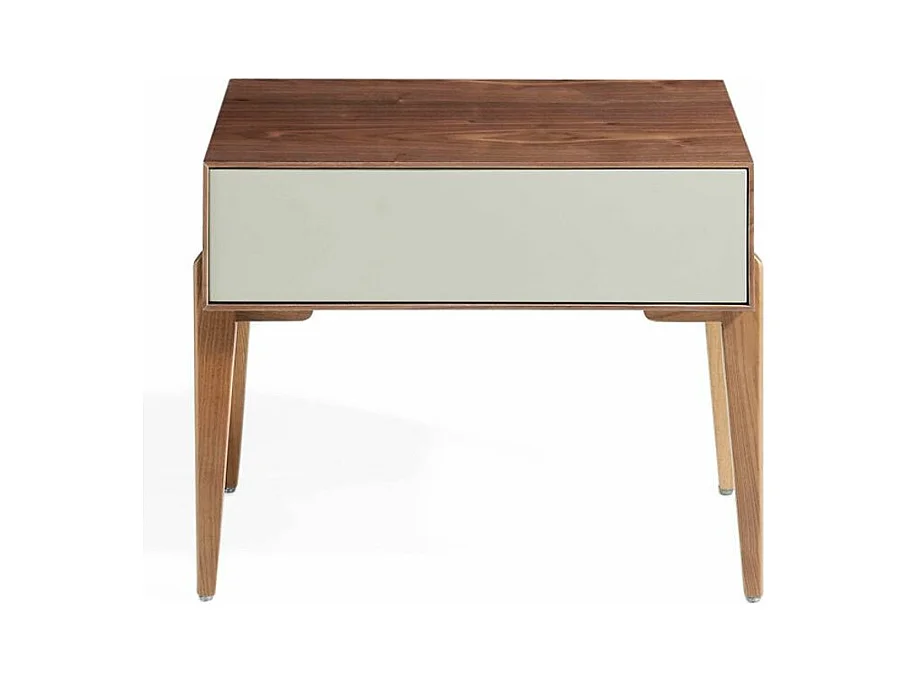 Chevet 1 tiroir bois laqué et bois noyer Muza-Couleur Pearl