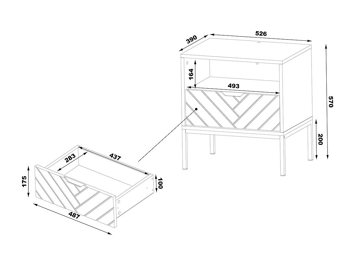 Table de chevet - 54 cm - noir avec pieds noires - VELLORE