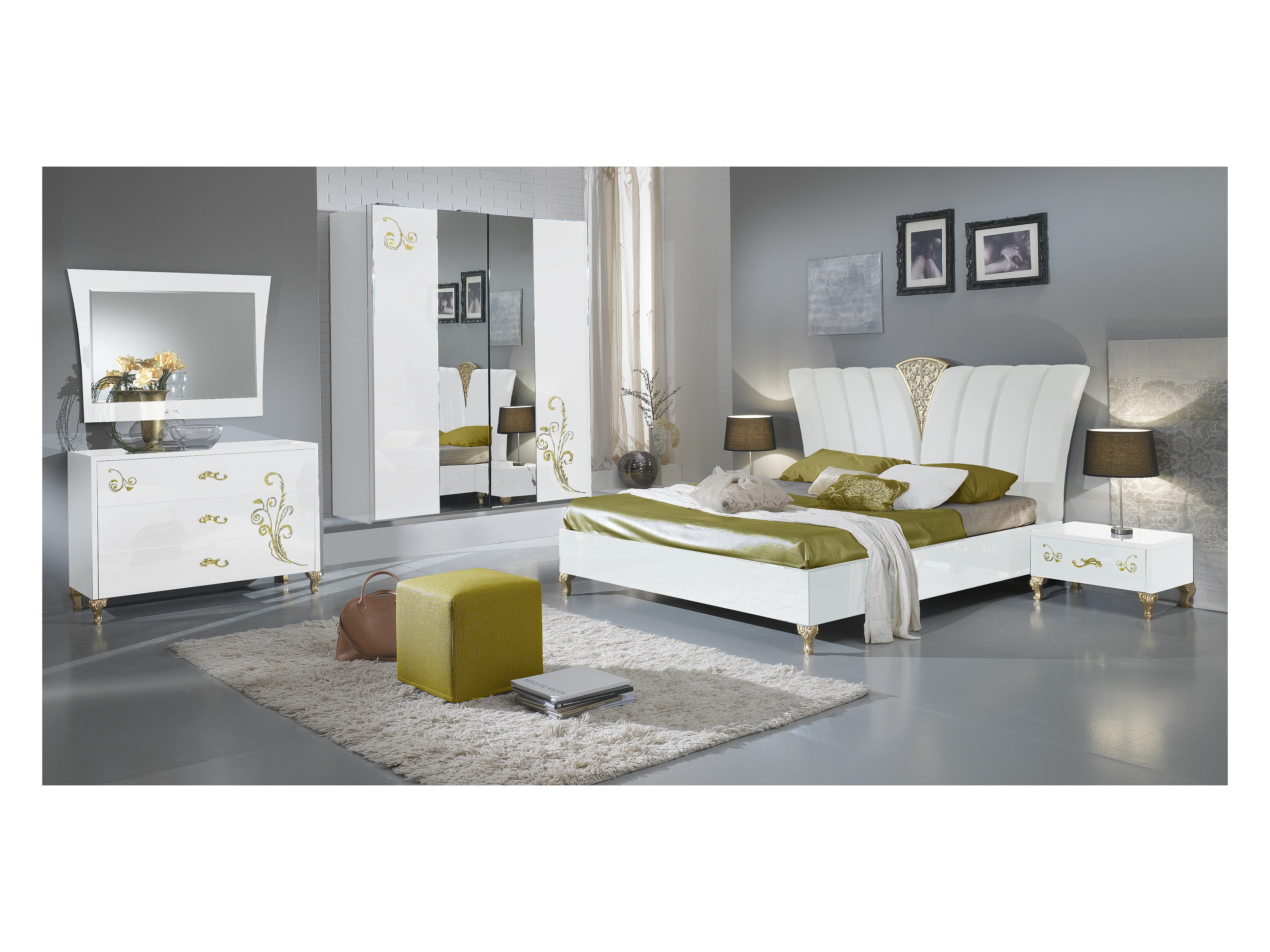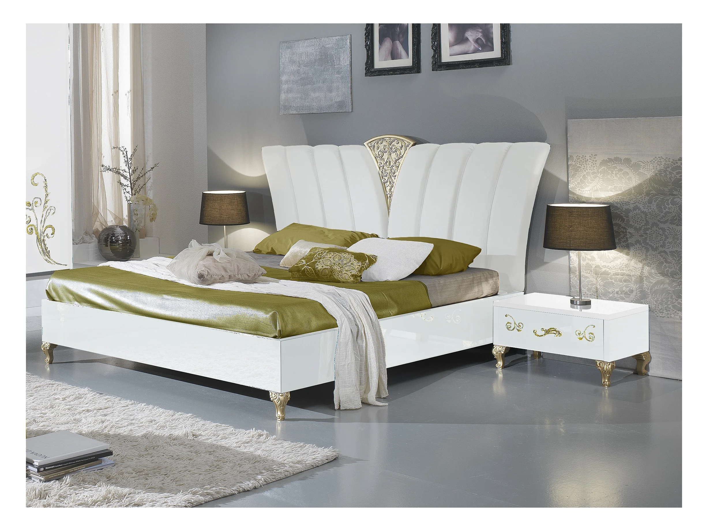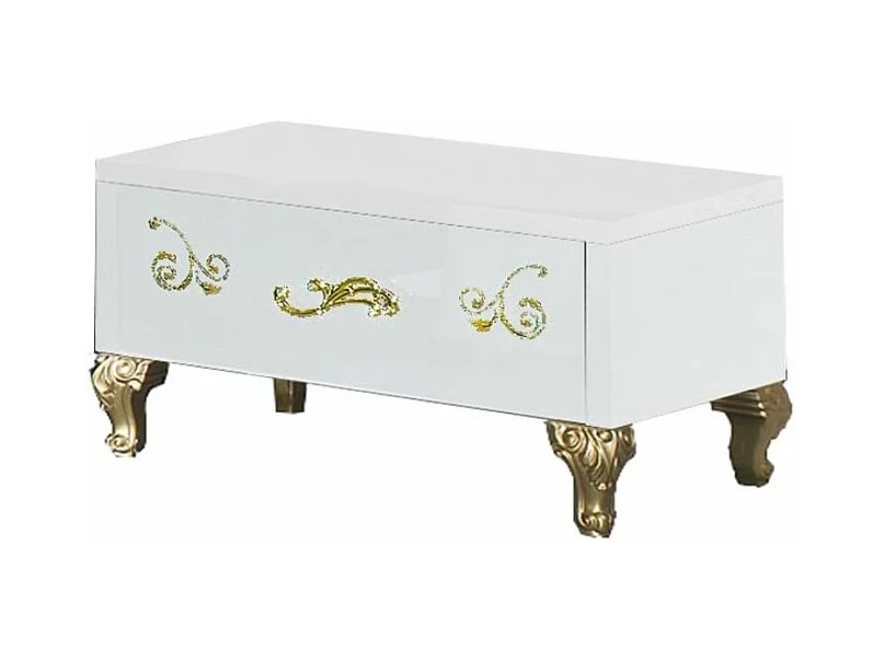 Chevet 1 tiroir design bois laqué blanc et doré Jade 60cm