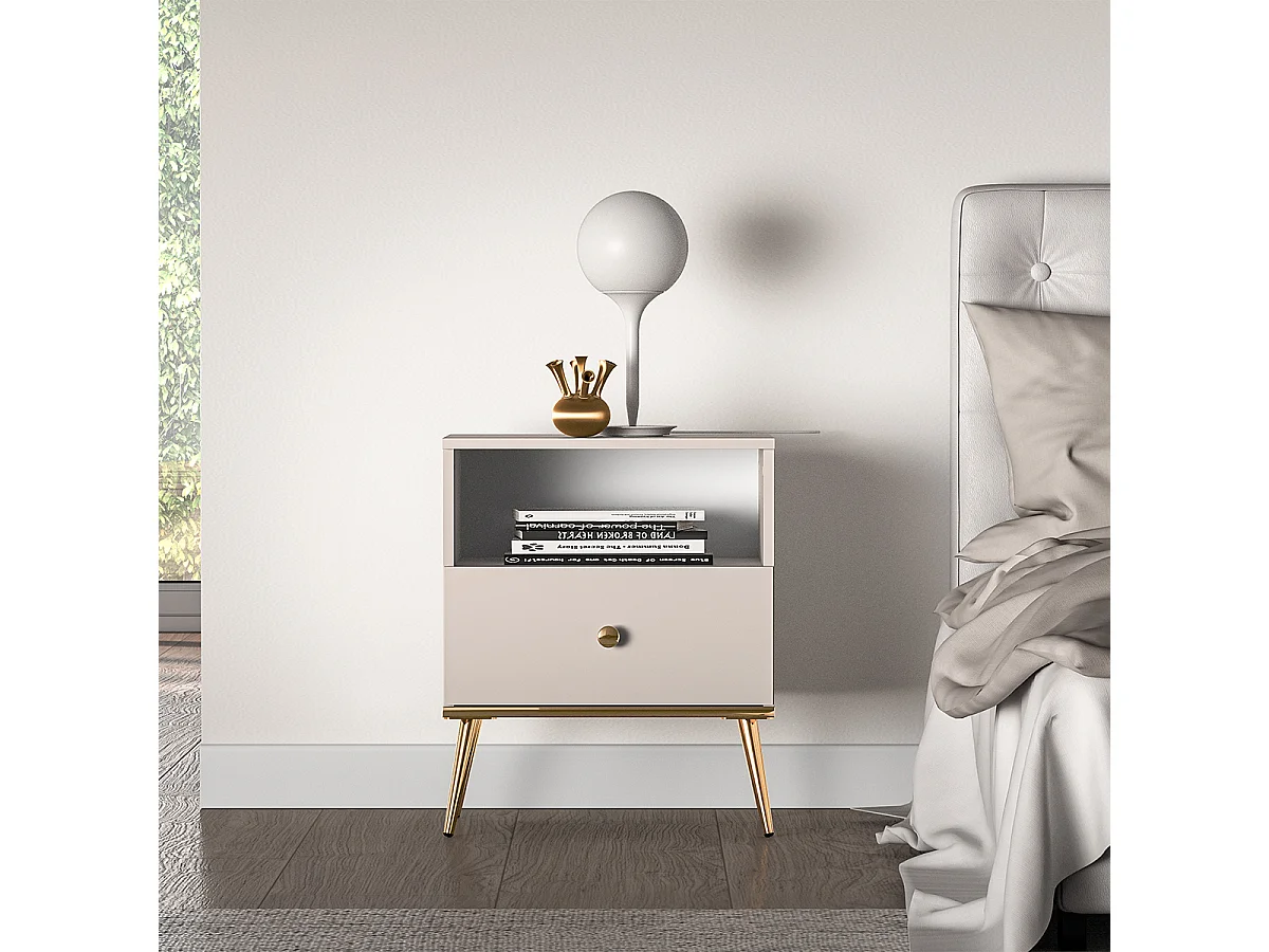 Chevet 1 tiroir Olivia Cachemire et Doré