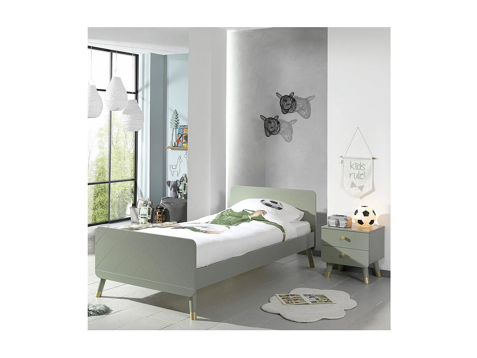 Table de Chevet Enfant 2 Tiroirs "Billy" 43cm Vert