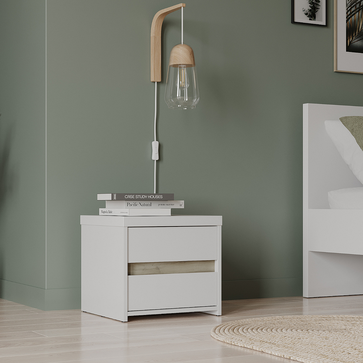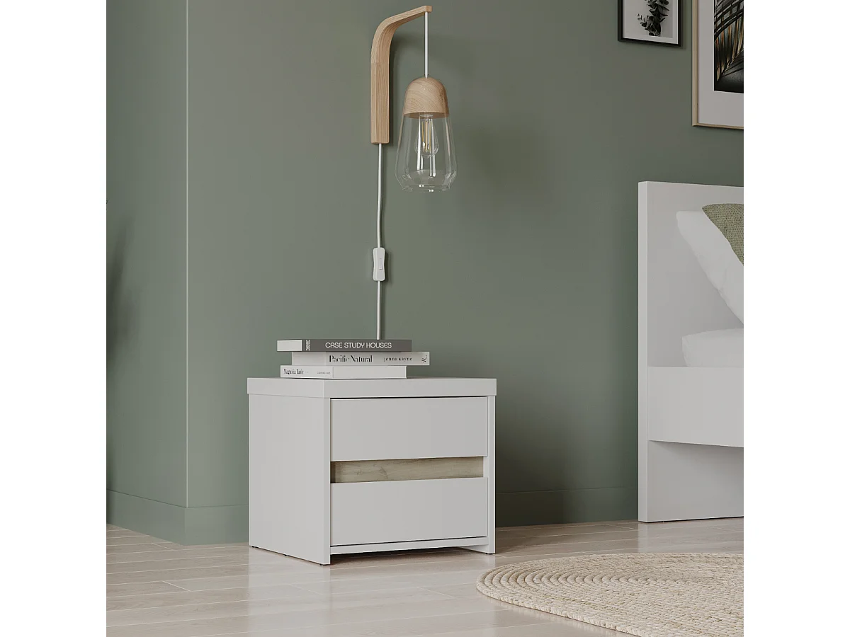 Chevet 2 tiroirs décor chêne kronberg et blanc mat L43,1 cm - CLYDE