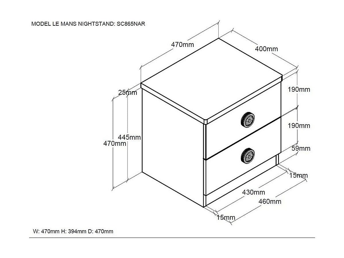 Table de Chevet 2 Tiroirs "London" 48cm Blanc