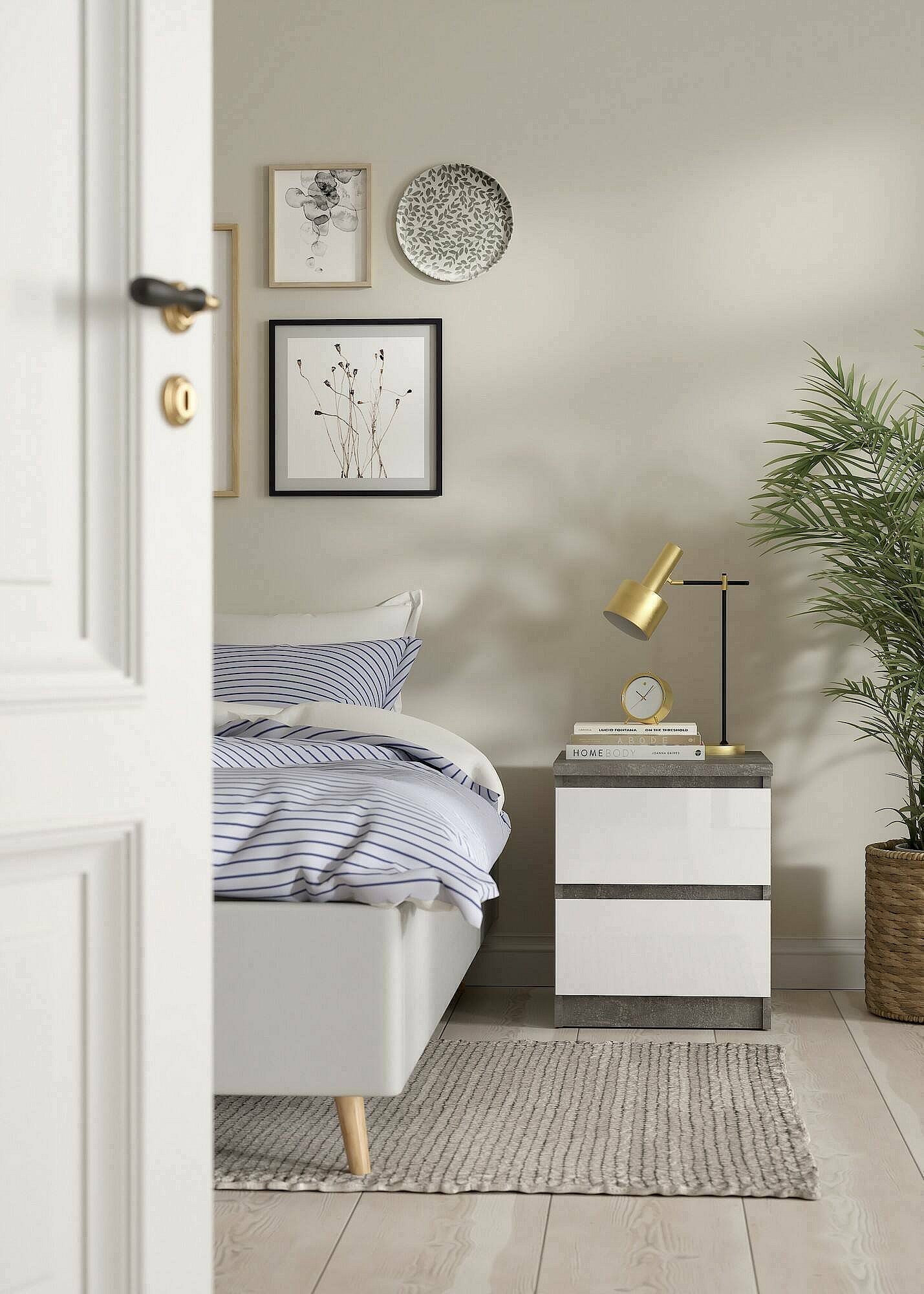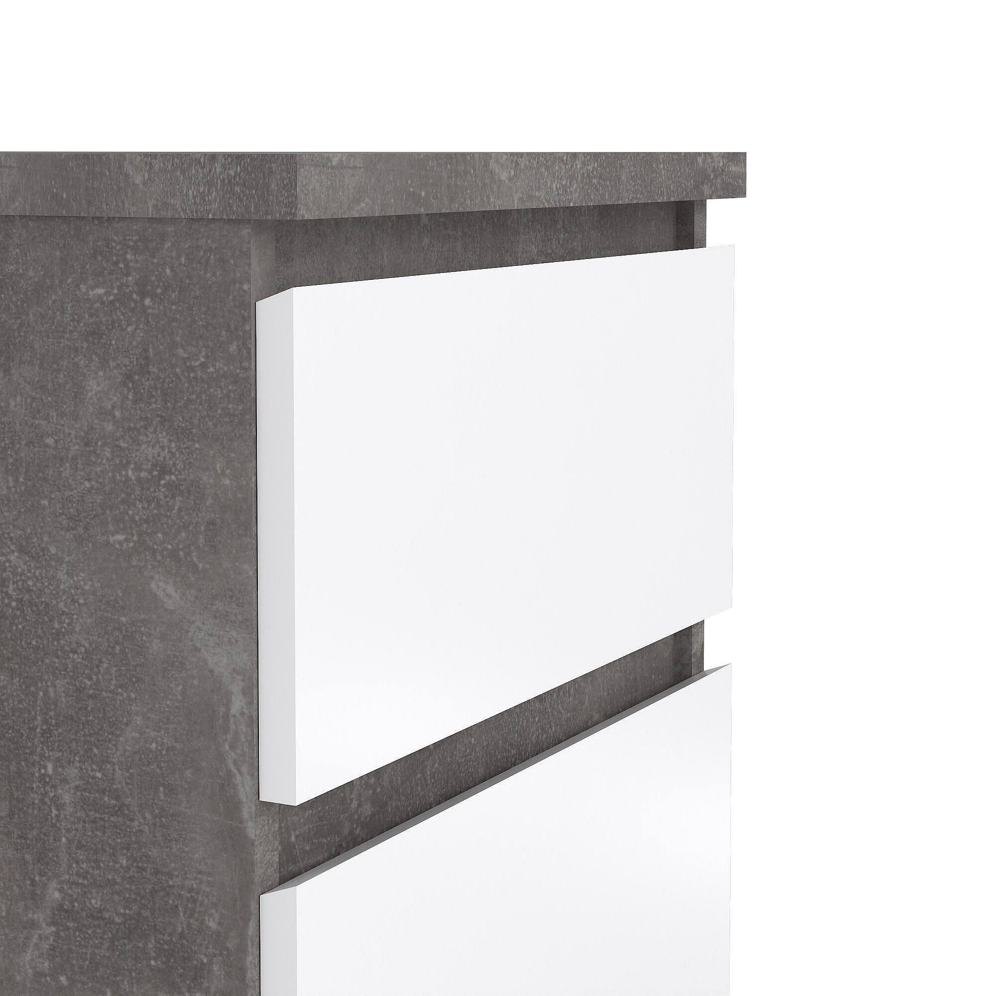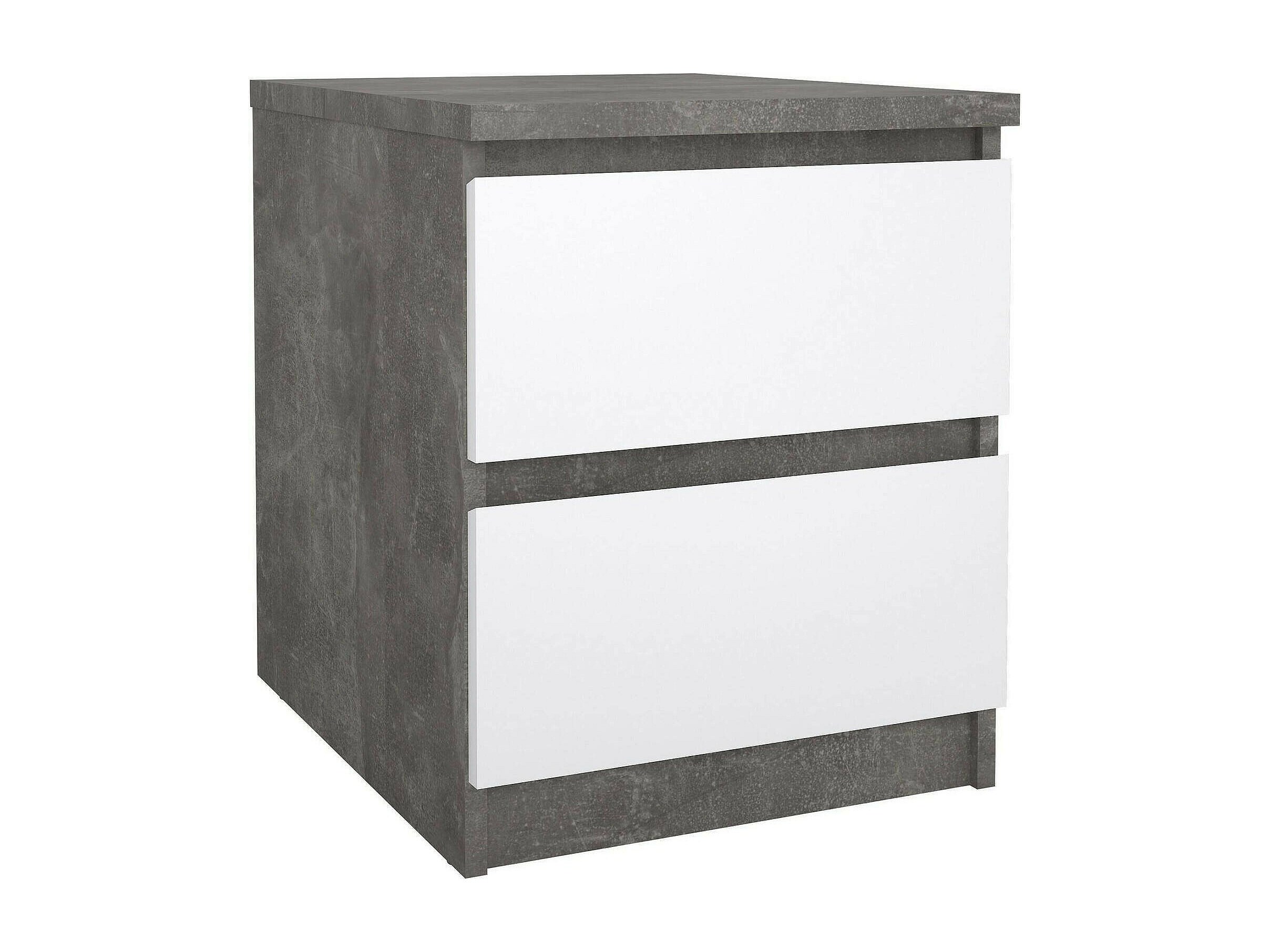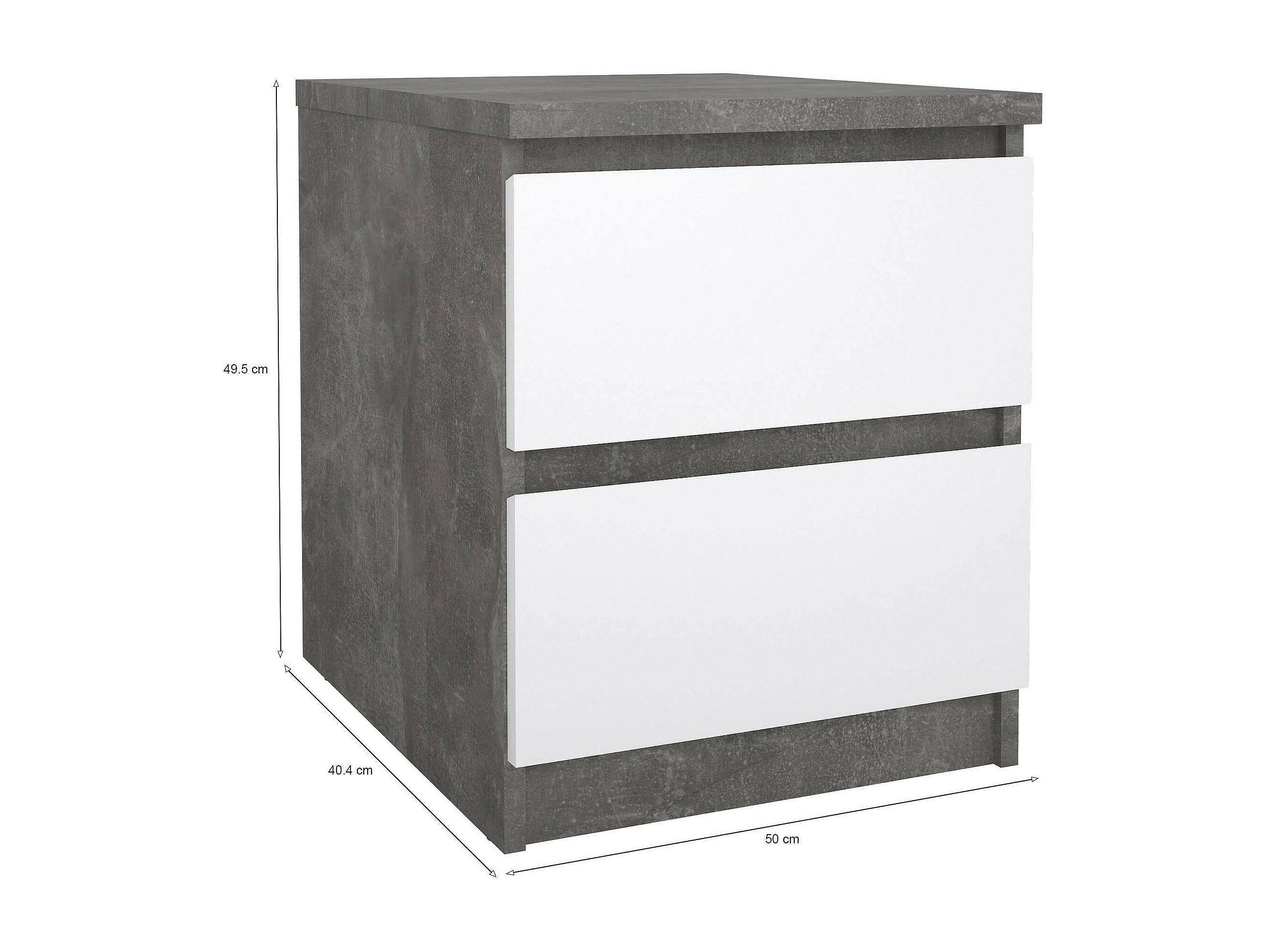 Chevet Azar, Commode basse, Table de nuit, Étagère de chevet, 50x40 h50 cm, Ciment et blanc brillant