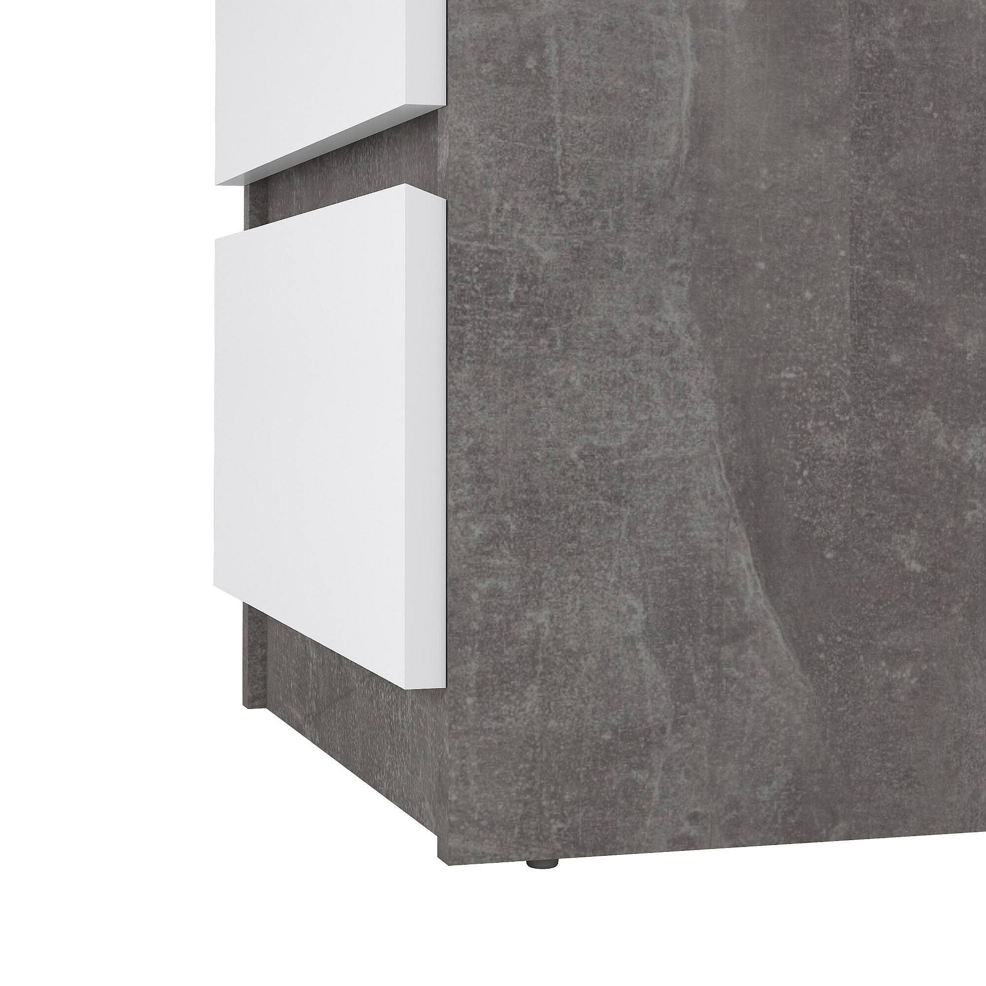 Chevet Drosi, Commode basse, Table de nuit, Étagère de chevet, 145x26 h80 cm, Ciment et blanc