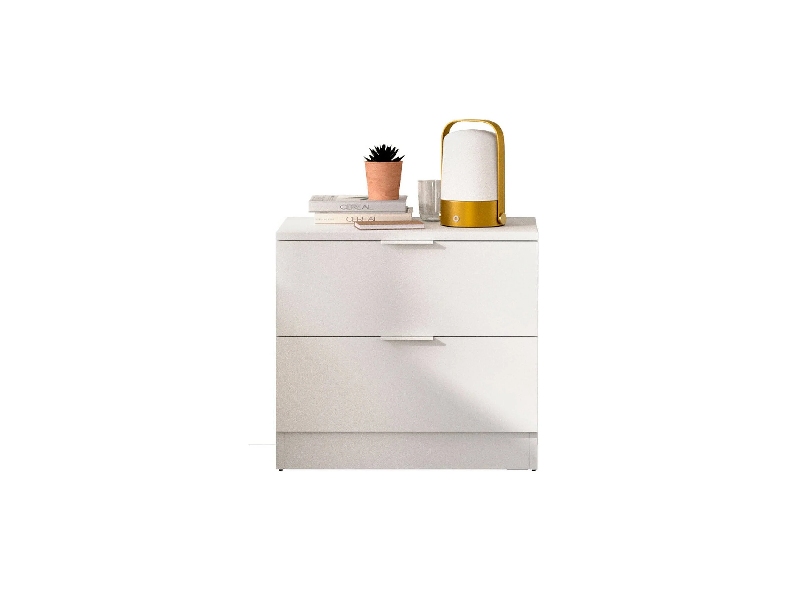 Table de chevet Nashville, Table de chevet 2 tiroirs, Table de nuit, Commode basse pour chambre, 50x34h49 cm, Blanc brillant