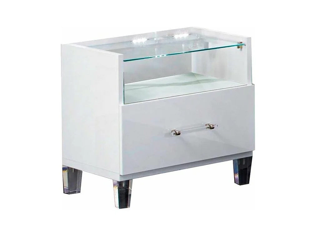 Chevet design bois blanc laqué et verre transparent à Led Krystal 60cm