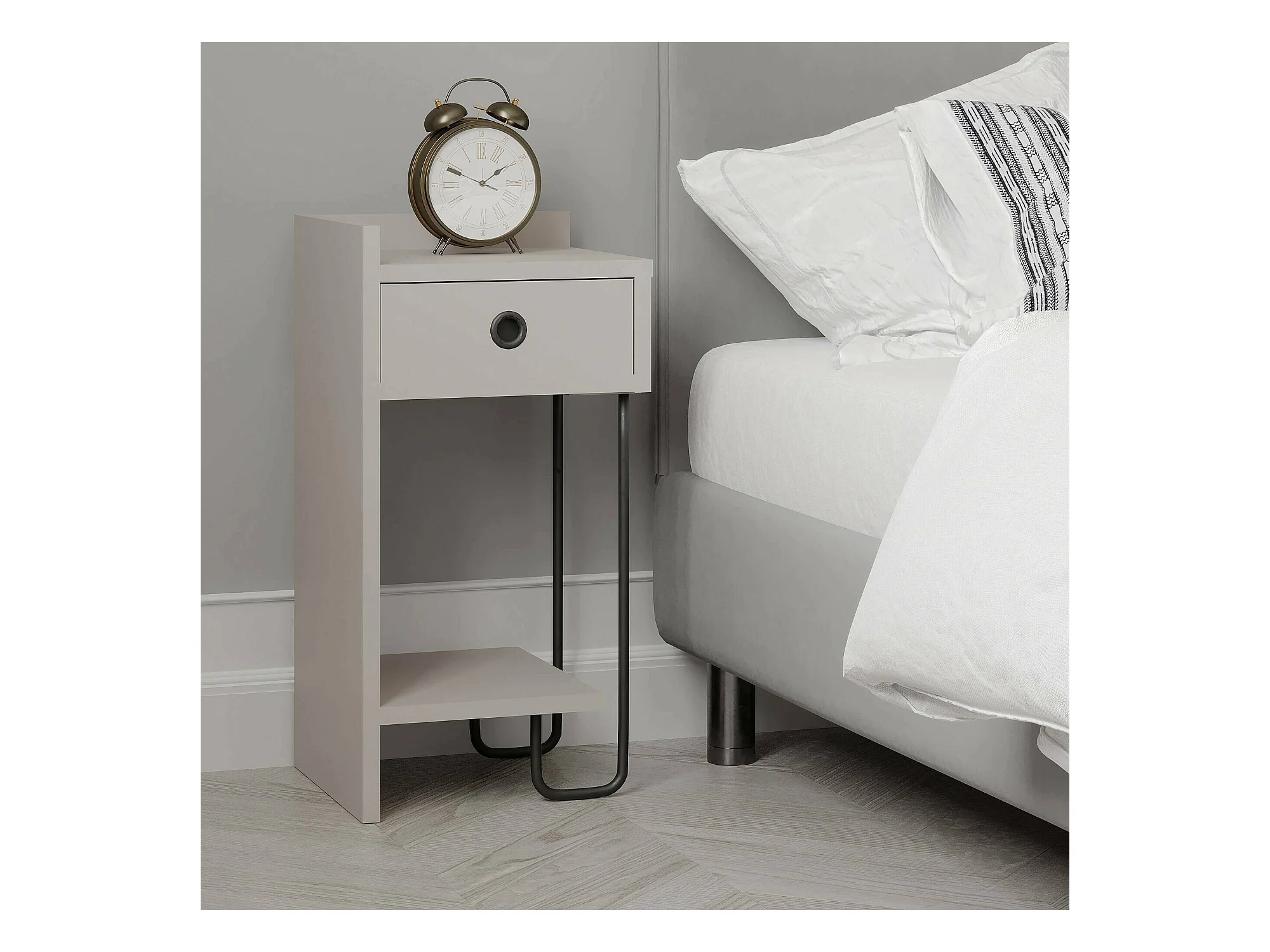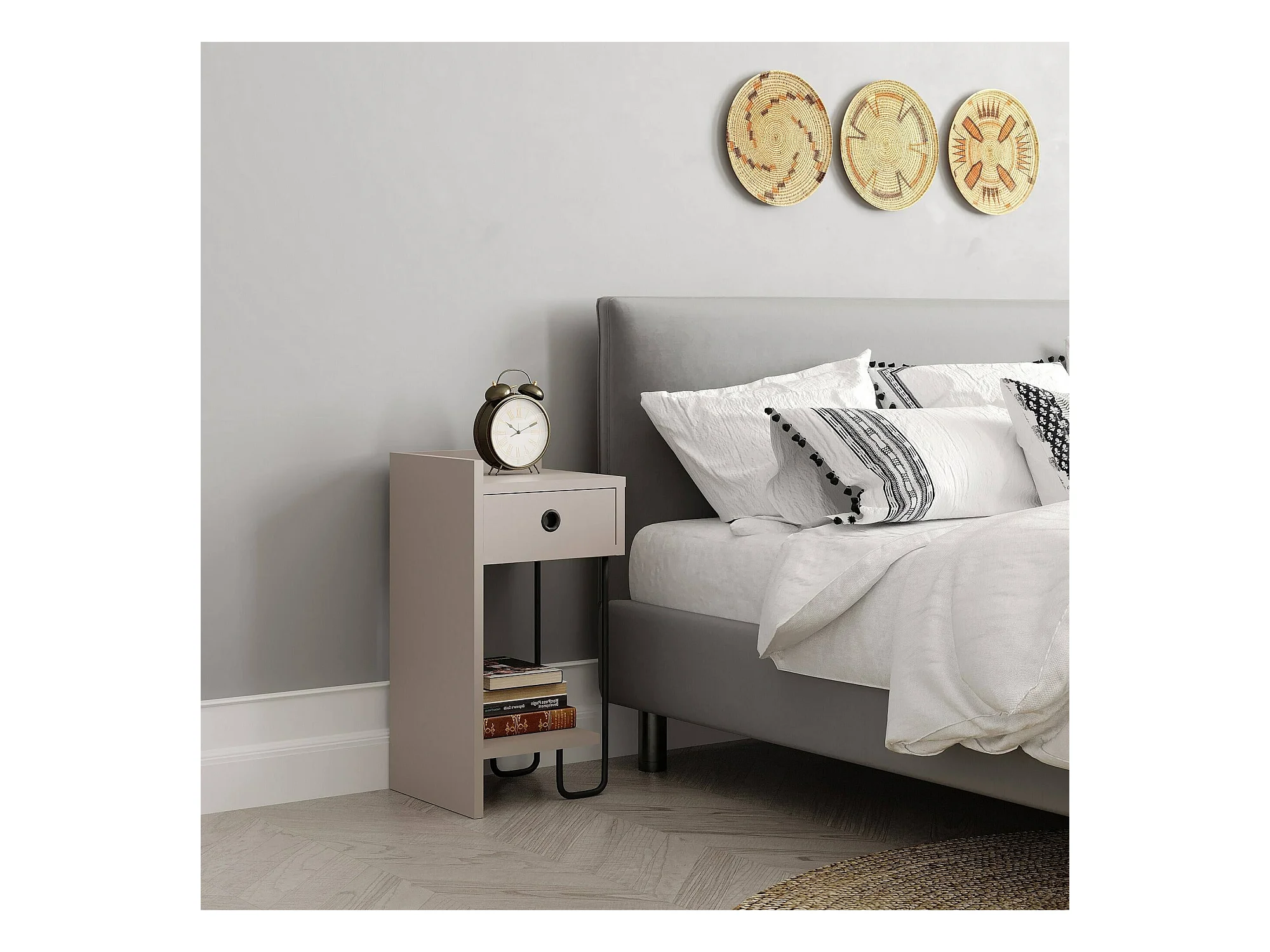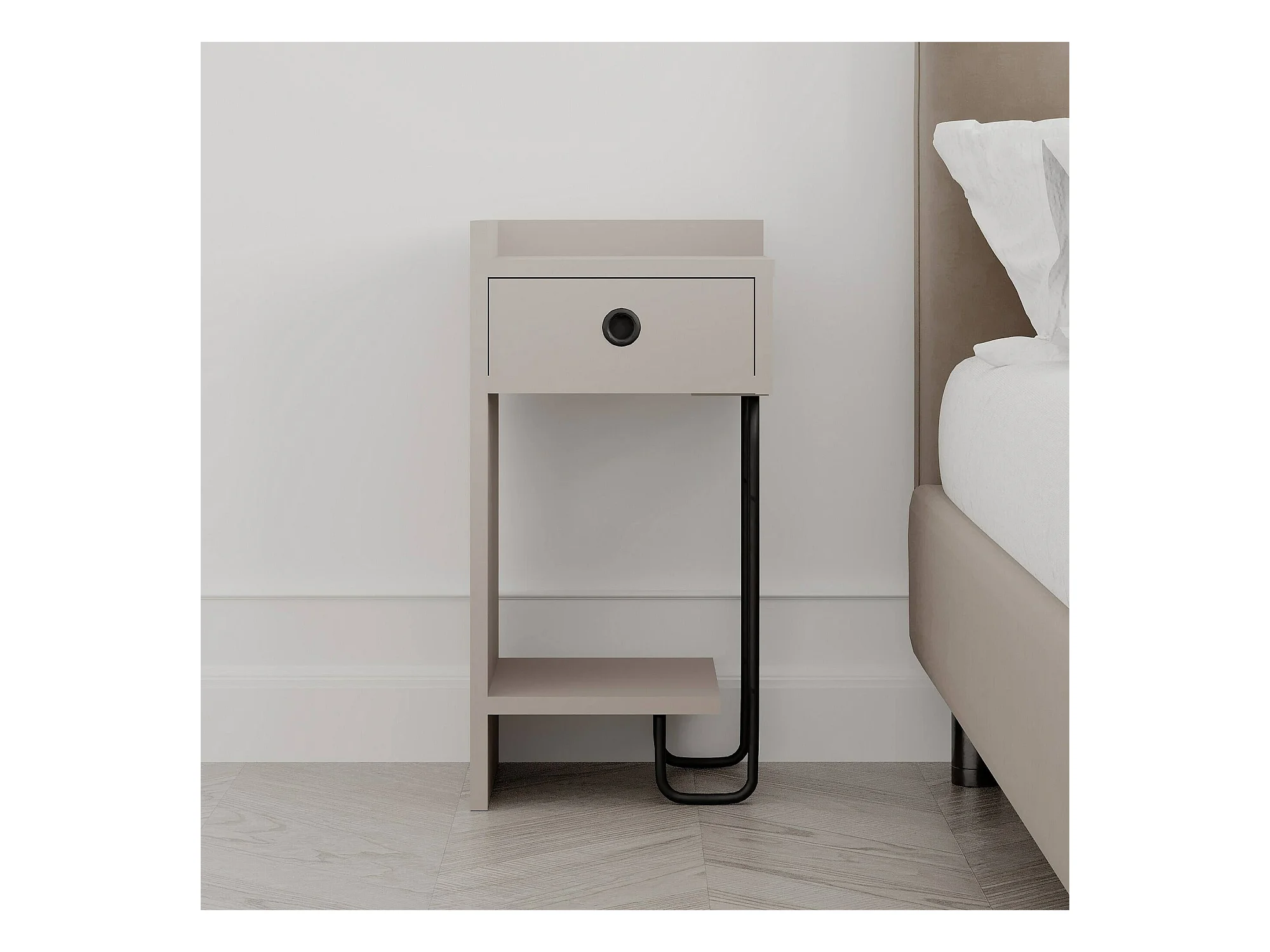 Chevet design 1 tiroir bois laqué et acier chromé Lony-Couleur Quartz