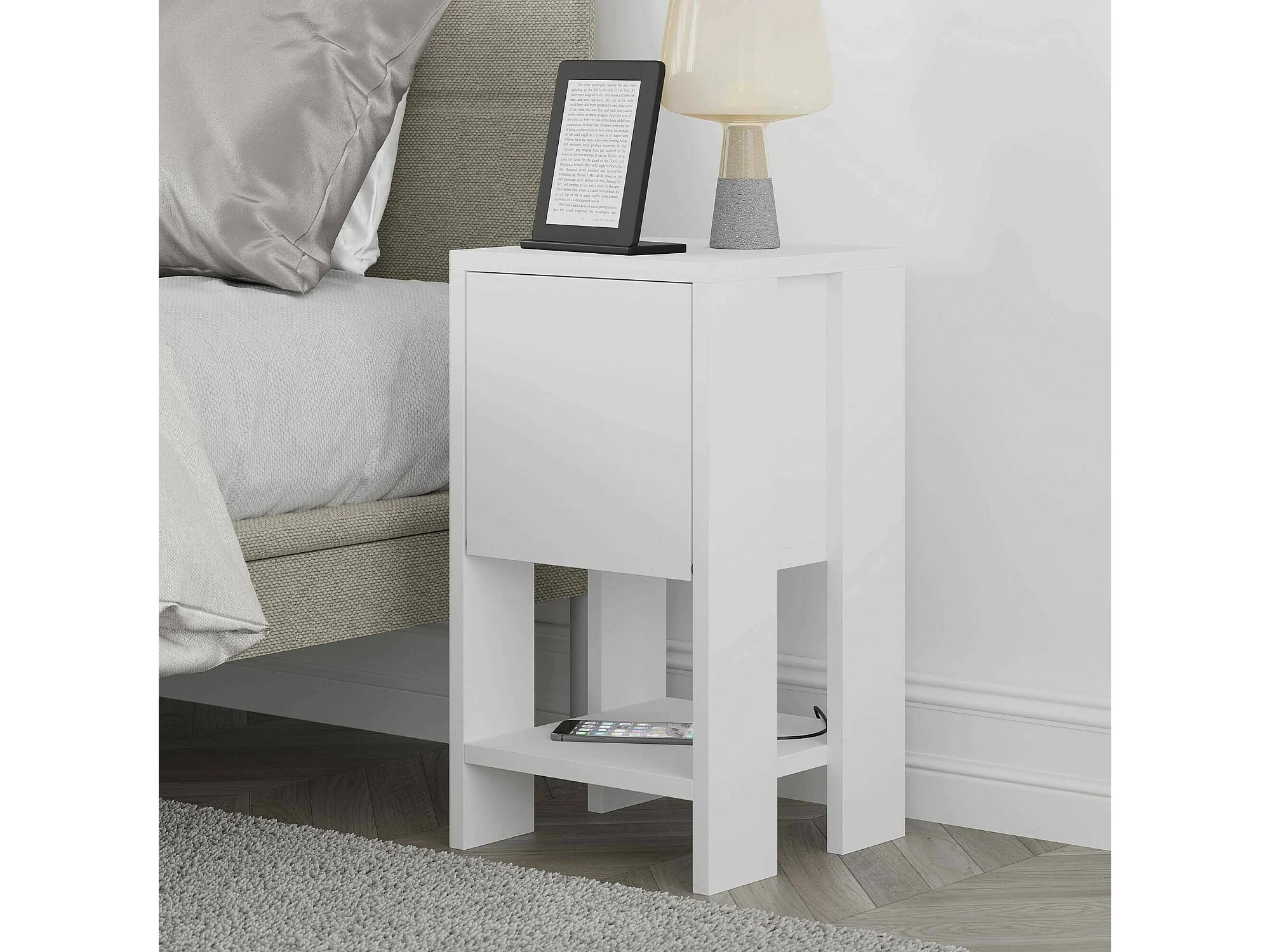 Chevet Draco, Commode basse, Table de nuit, Étagère de chevet, 30x30h55 cm, Blanc