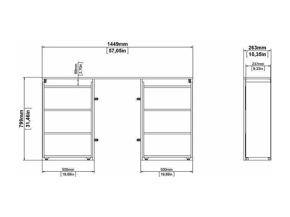 Chevet Drosi, Commode basse, Table de nuit, Étagère de chevet, 145x26 h80 cm, Blanc