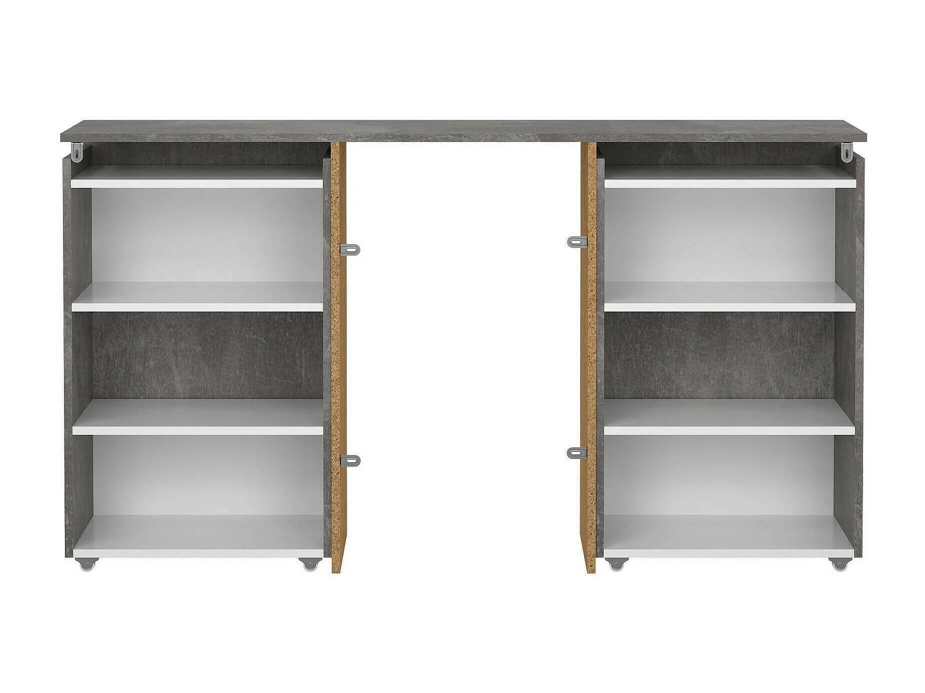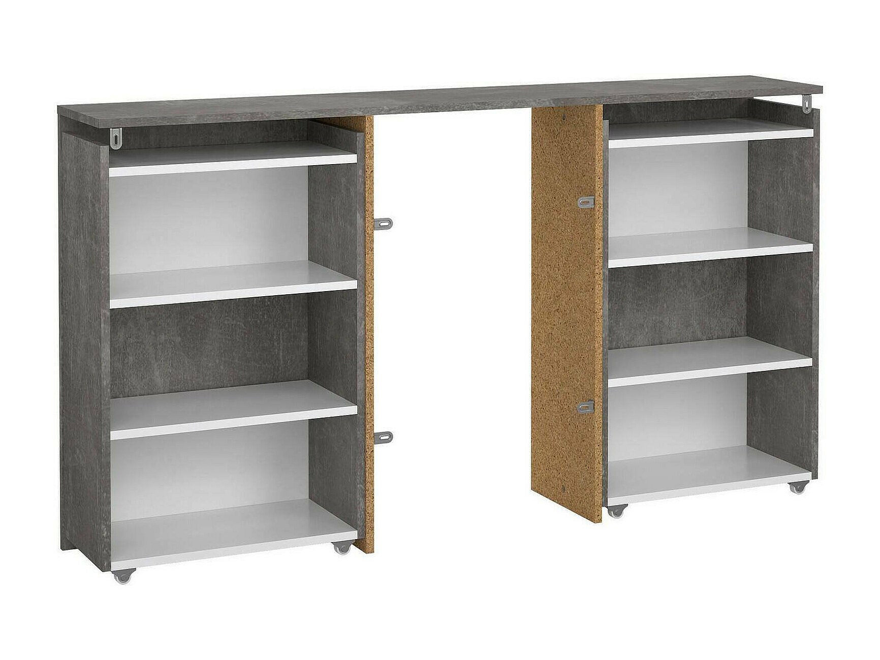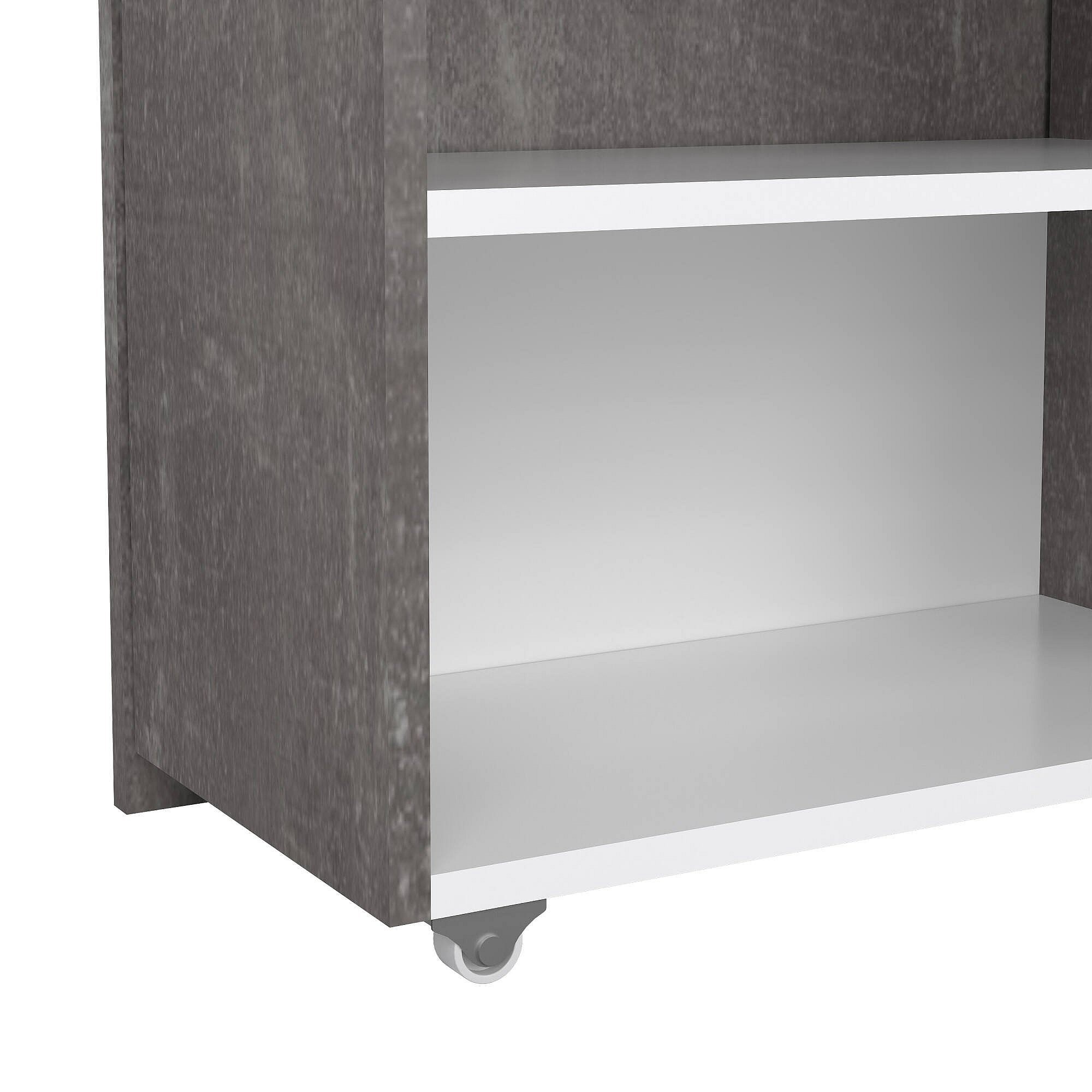 Chevet Drosi, Commode basse, Table de nuit, Étagère de chevet, 145x26 h80 cm, Ciment et blanc