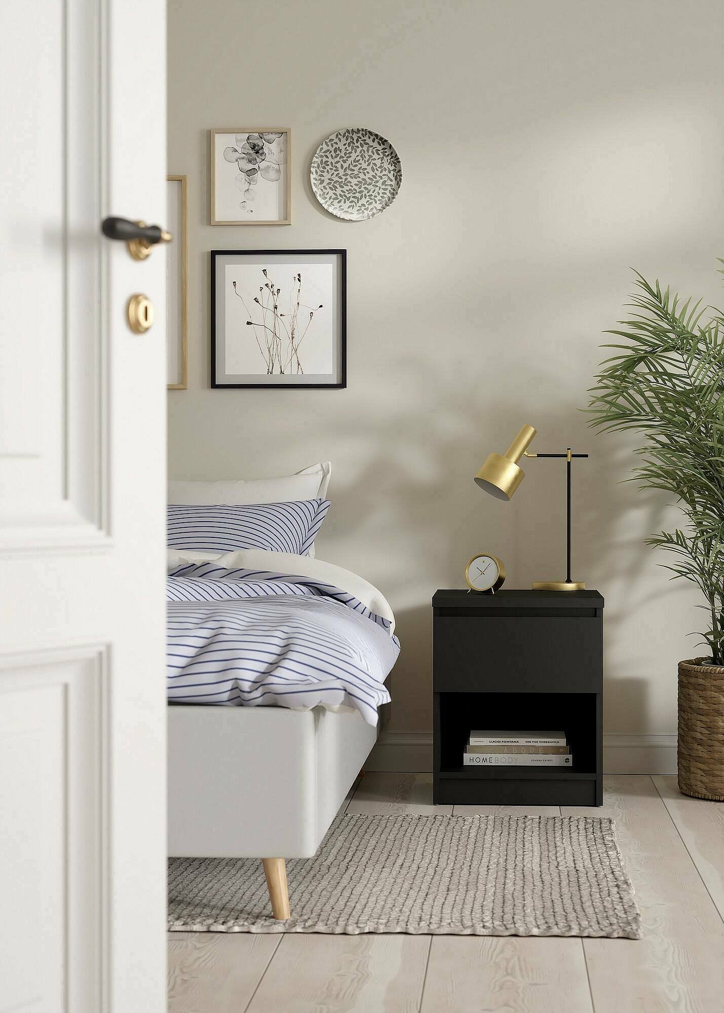 Chevet Dross, Commode basse, Table de nuit, Étagère de chevet, 40x40 h50 cm, Noir