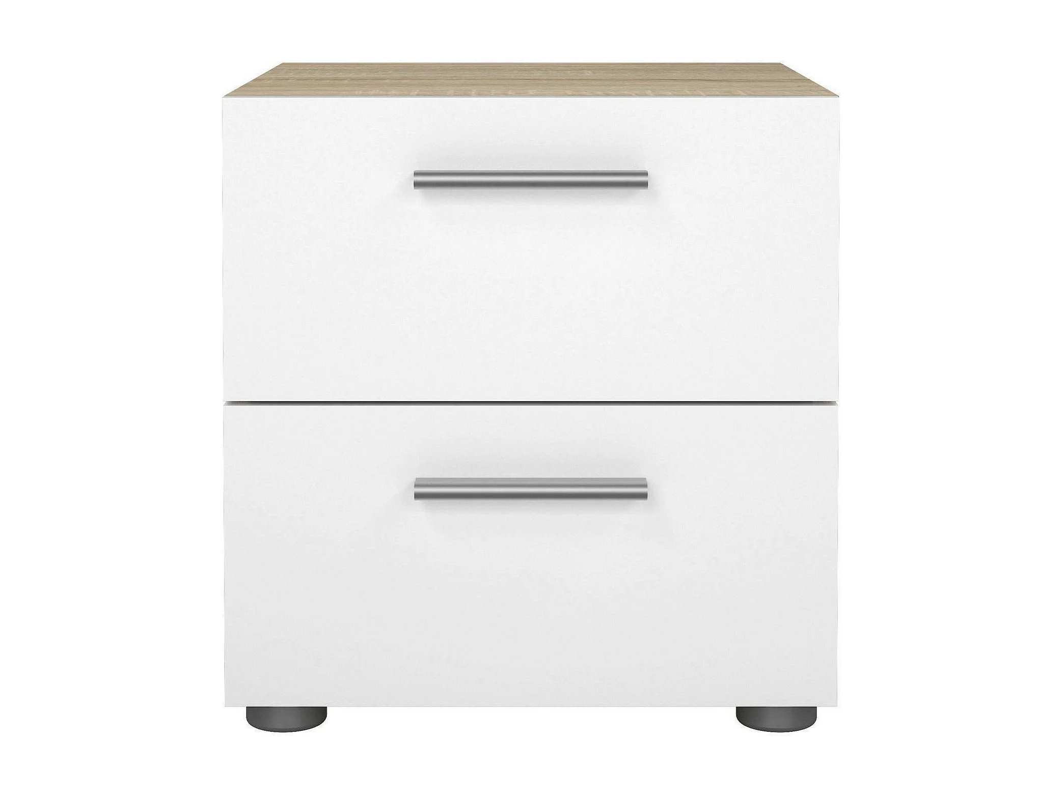 Chevet Drossitt, Commode basse, Table de nuit, Étagère de chevet, 40x40 h47 cm, Chêne clair et Blanc