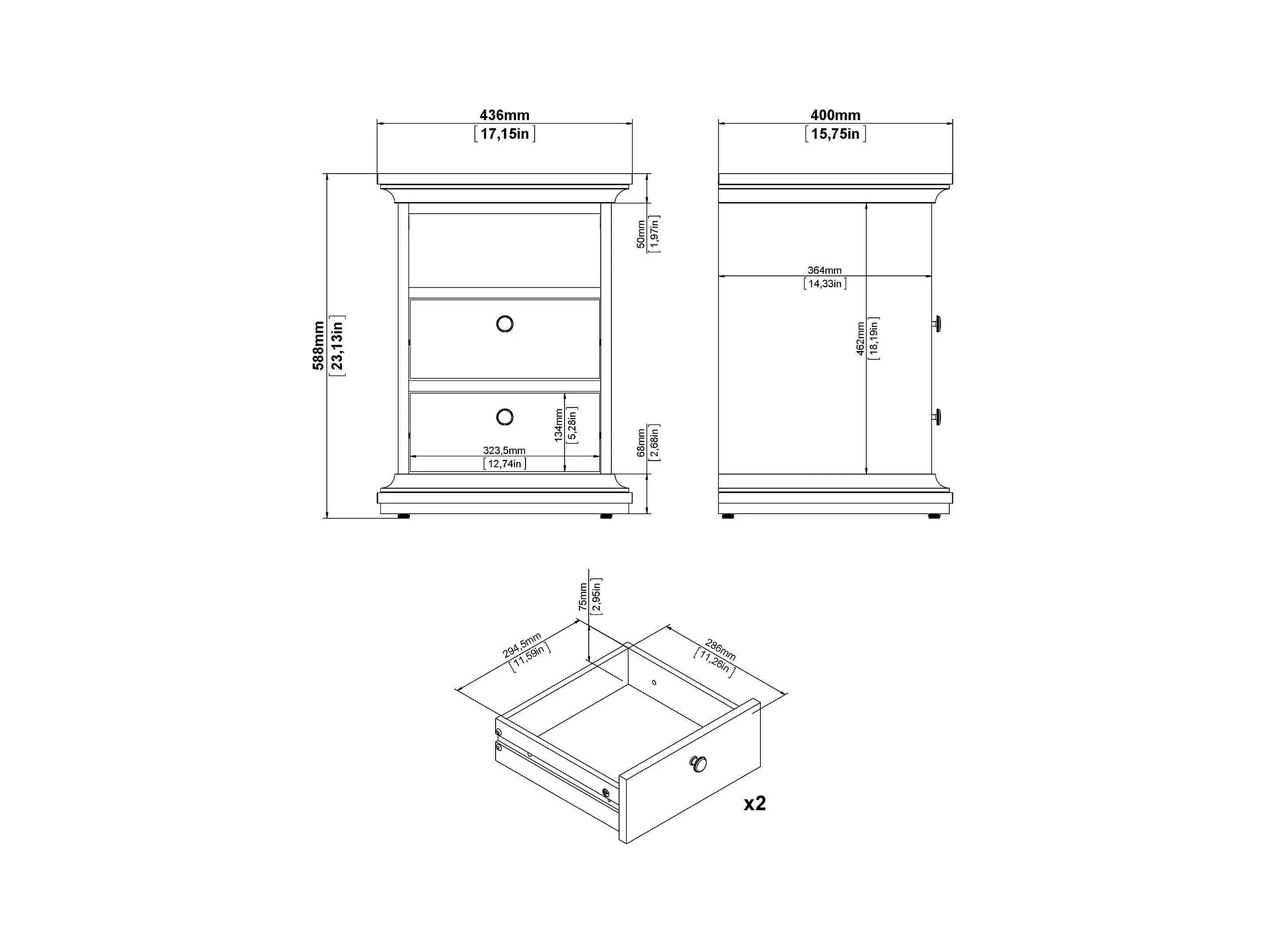 Chevet Drrahman, Commode basse, Table de nuit, Étagère de chevet, 44x40 h70 cm, Gris