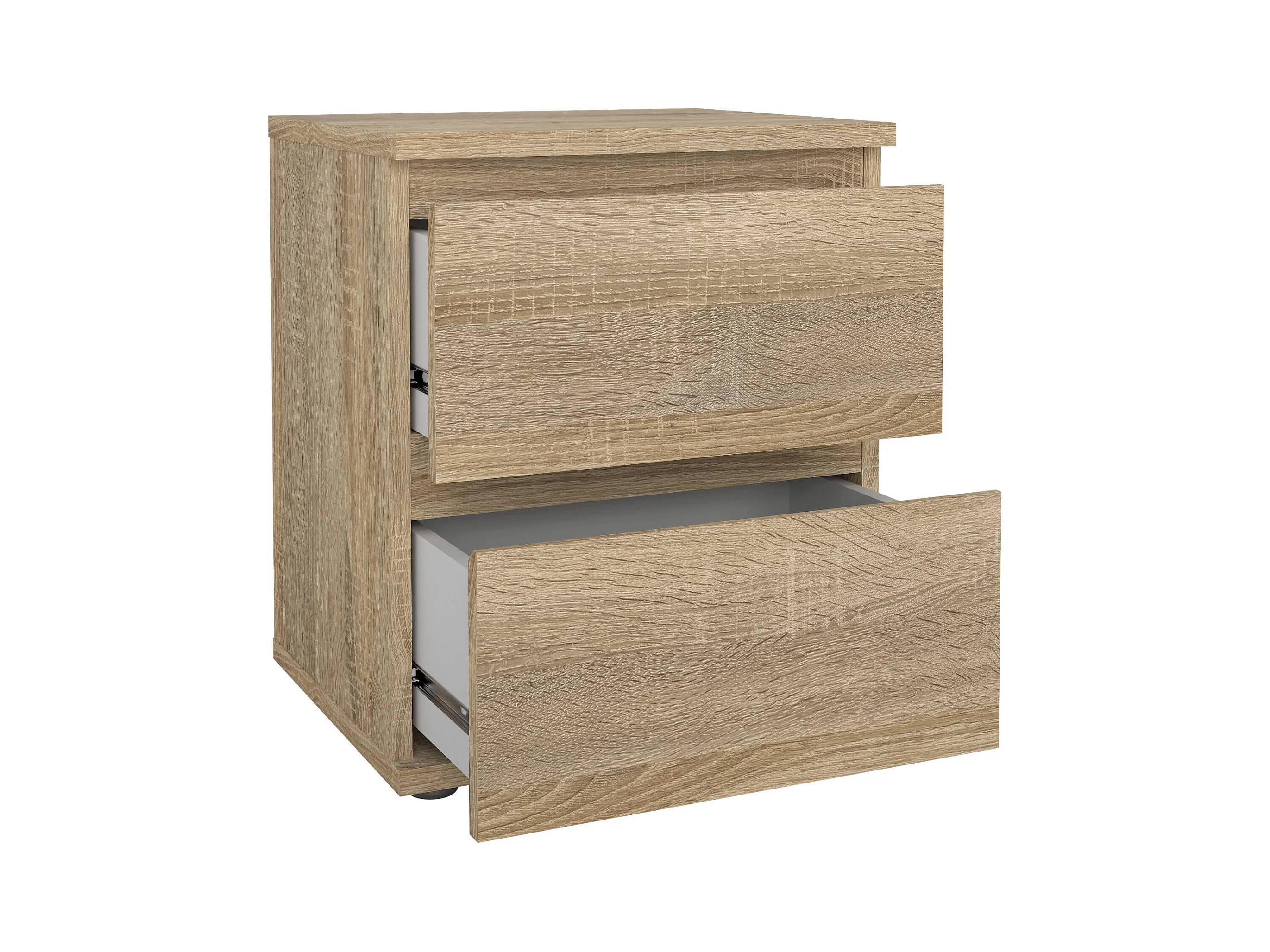 Table de chevet Syracuse, Table de chevet moderne avec 2 tiroirs, Table de nuit, Commode basse pour chambre, 38x34h45 cm, Chêne