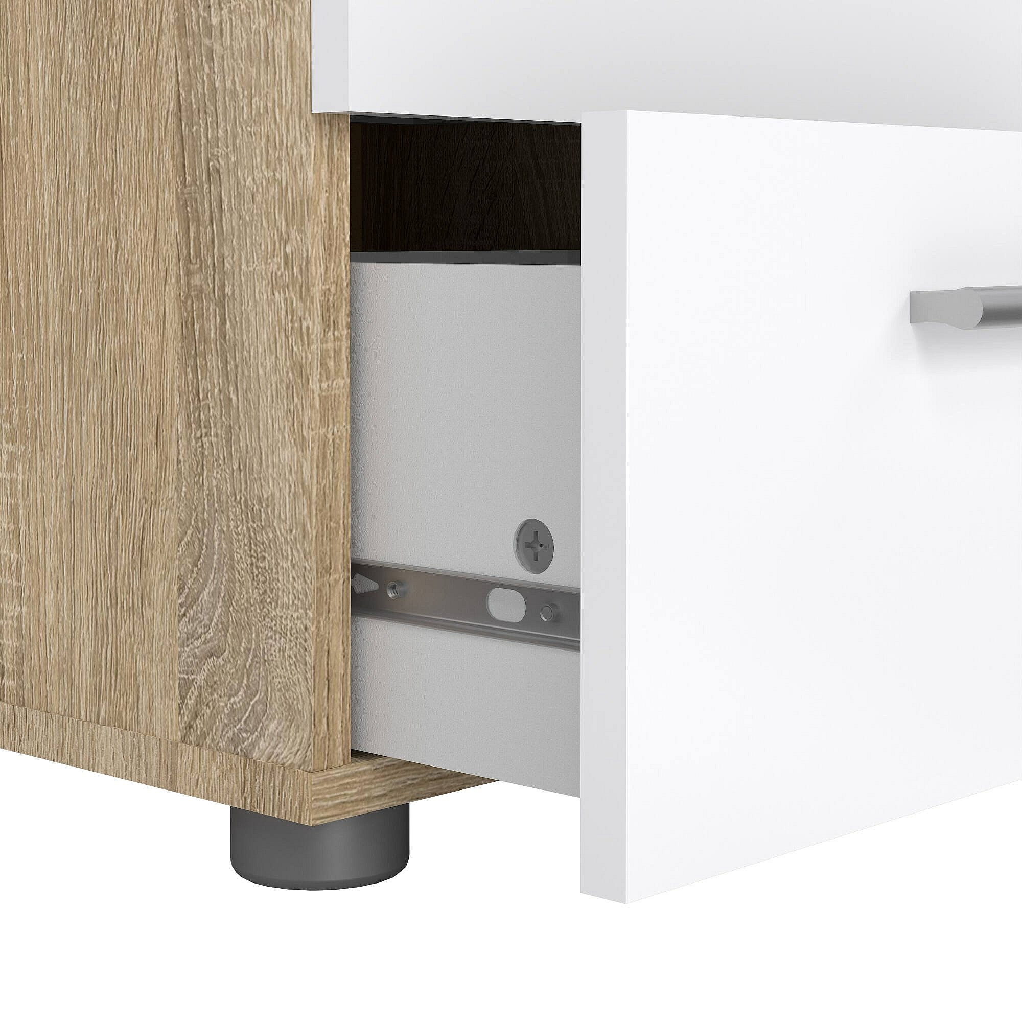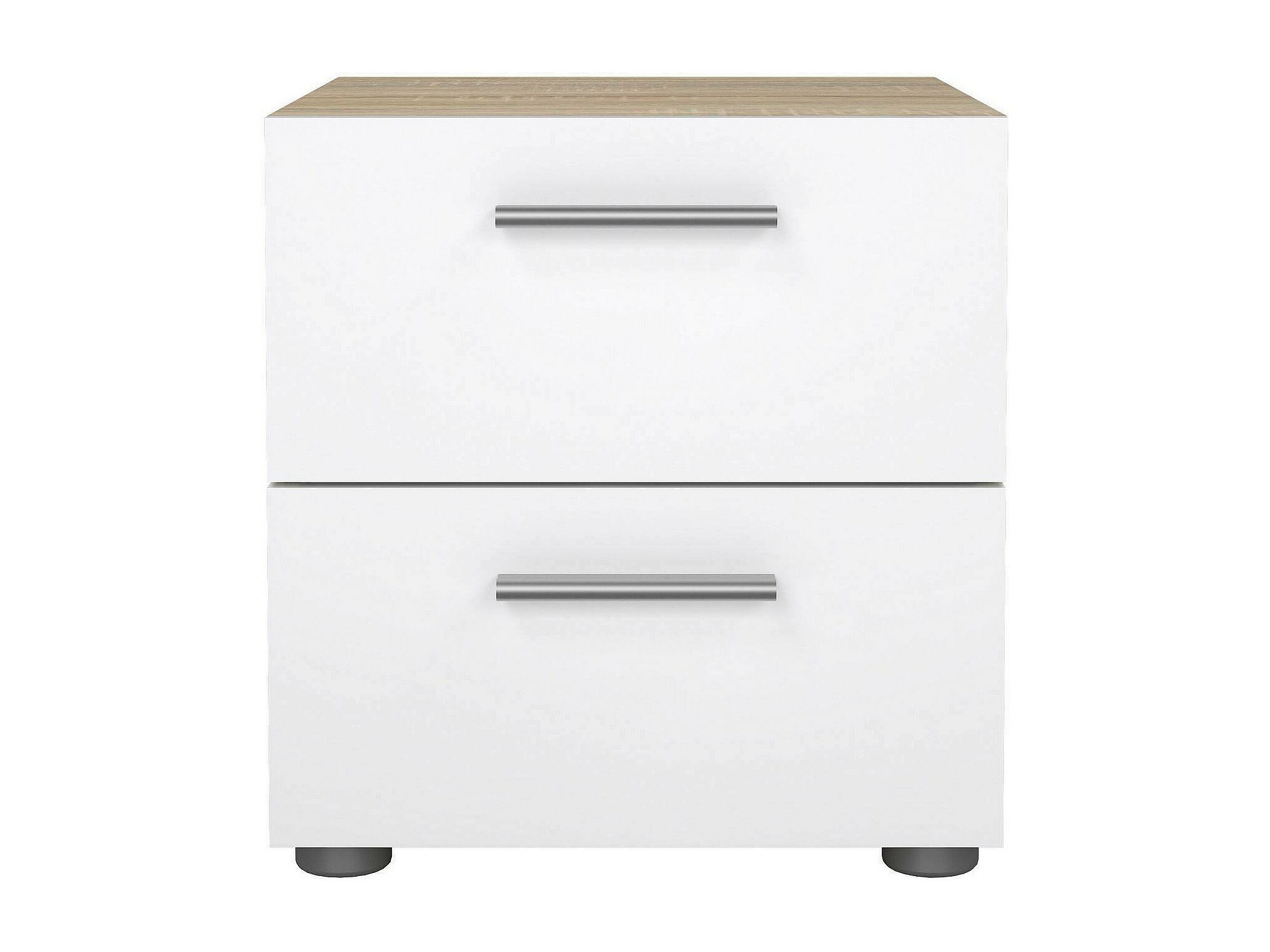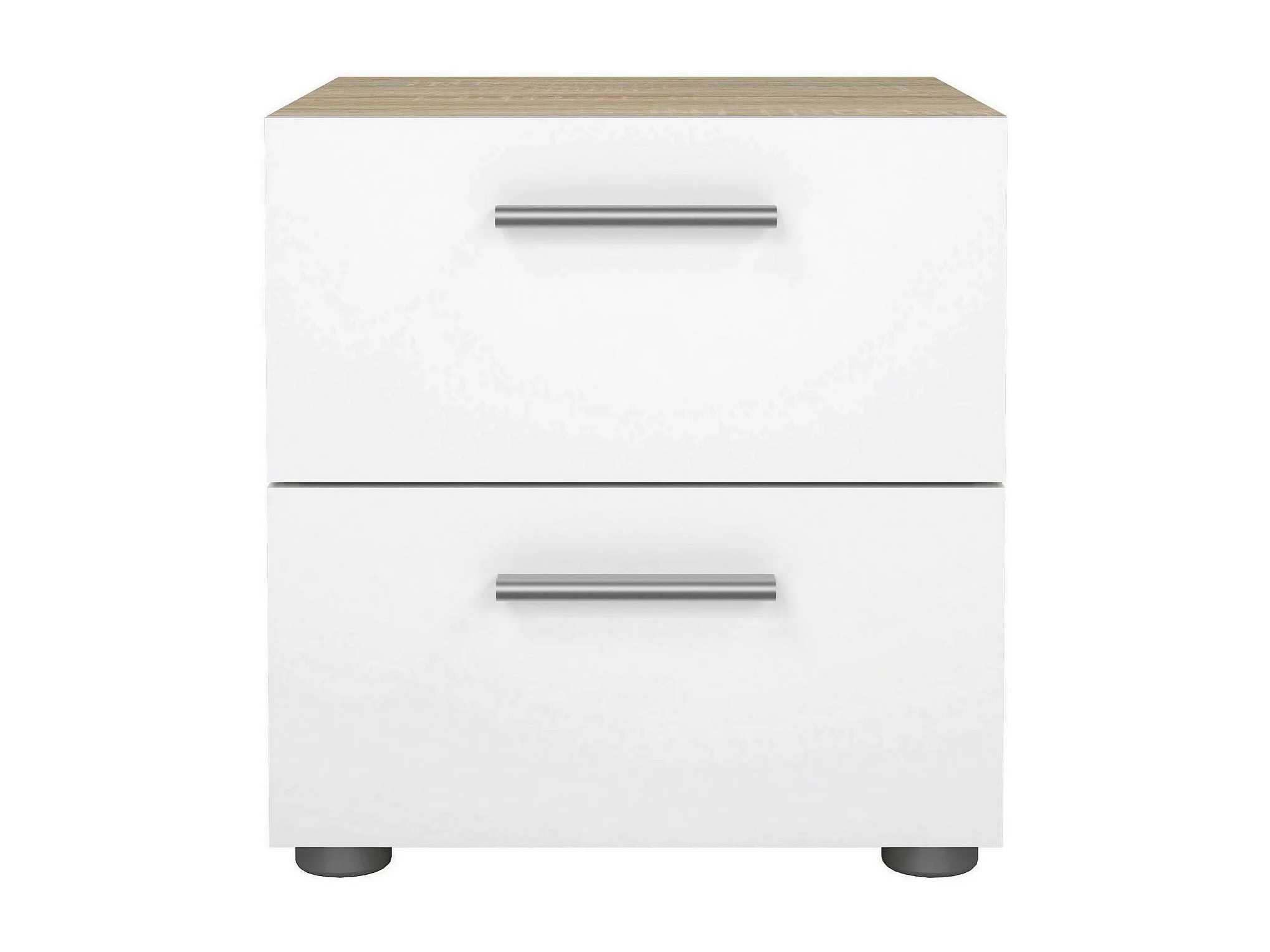 Chevet Drossitt, Commode basse, Table de nuit, Étagère de chevet, 40x40 h47 cm, Chêne clair et Blanc