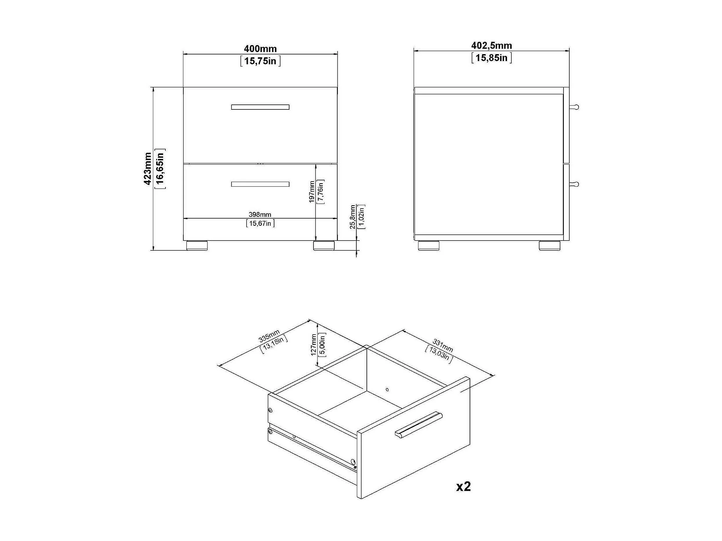 Chevet Drueg, Commode basse, Table de nuit, Étagère de chevet, 50x40 h50 cm, Noir