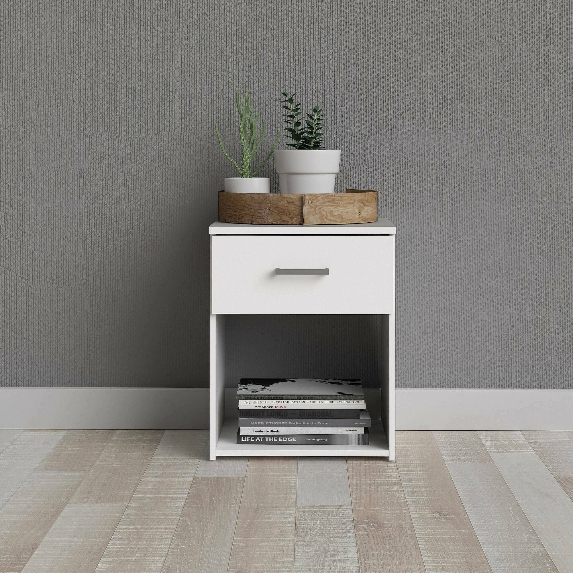 Chevet Drugan, Commode basse, Table de nuit, Étagère de chevet, 40x34 h48 cm, Blanc