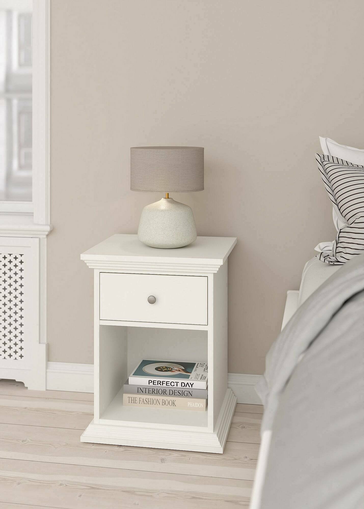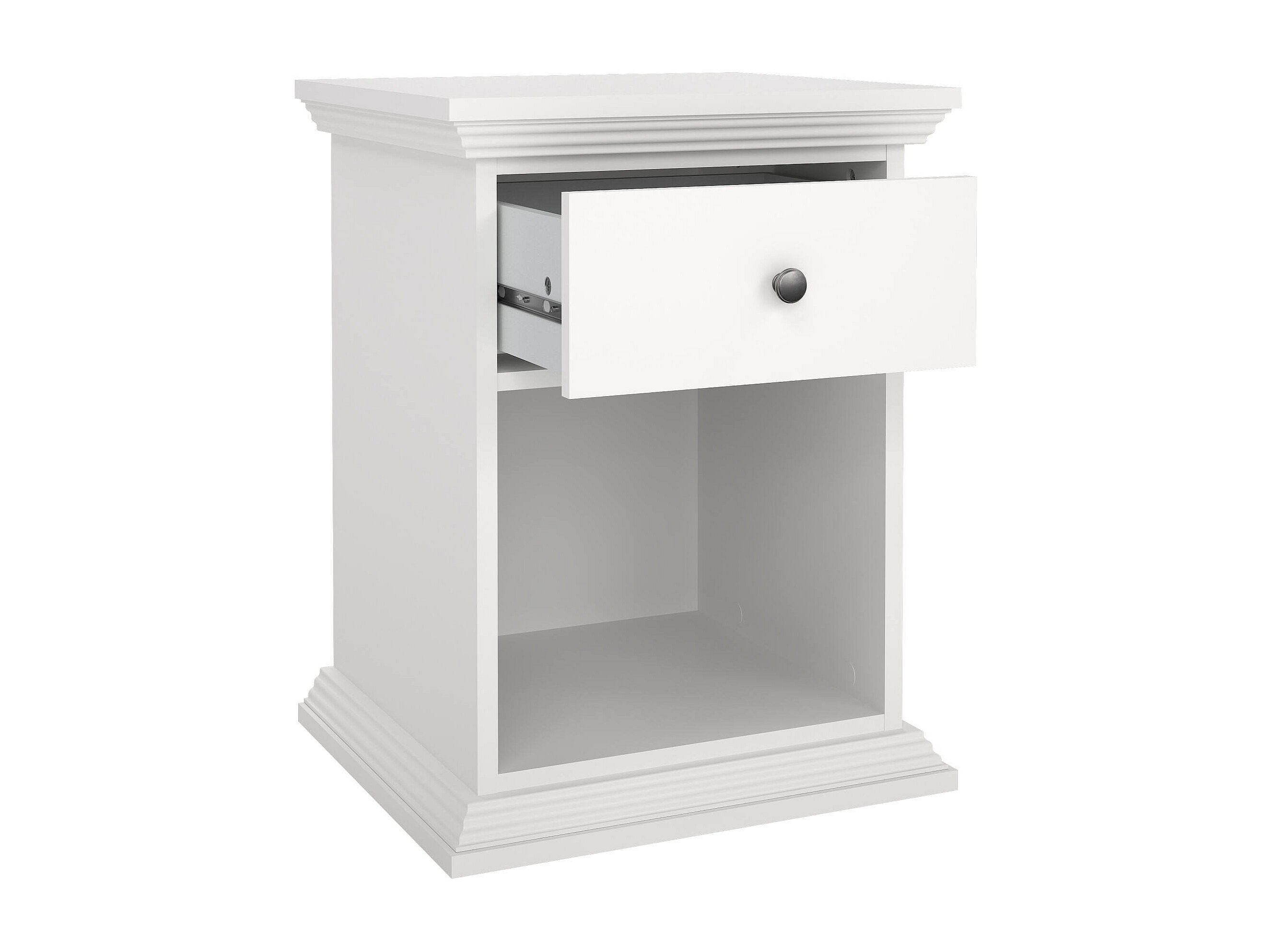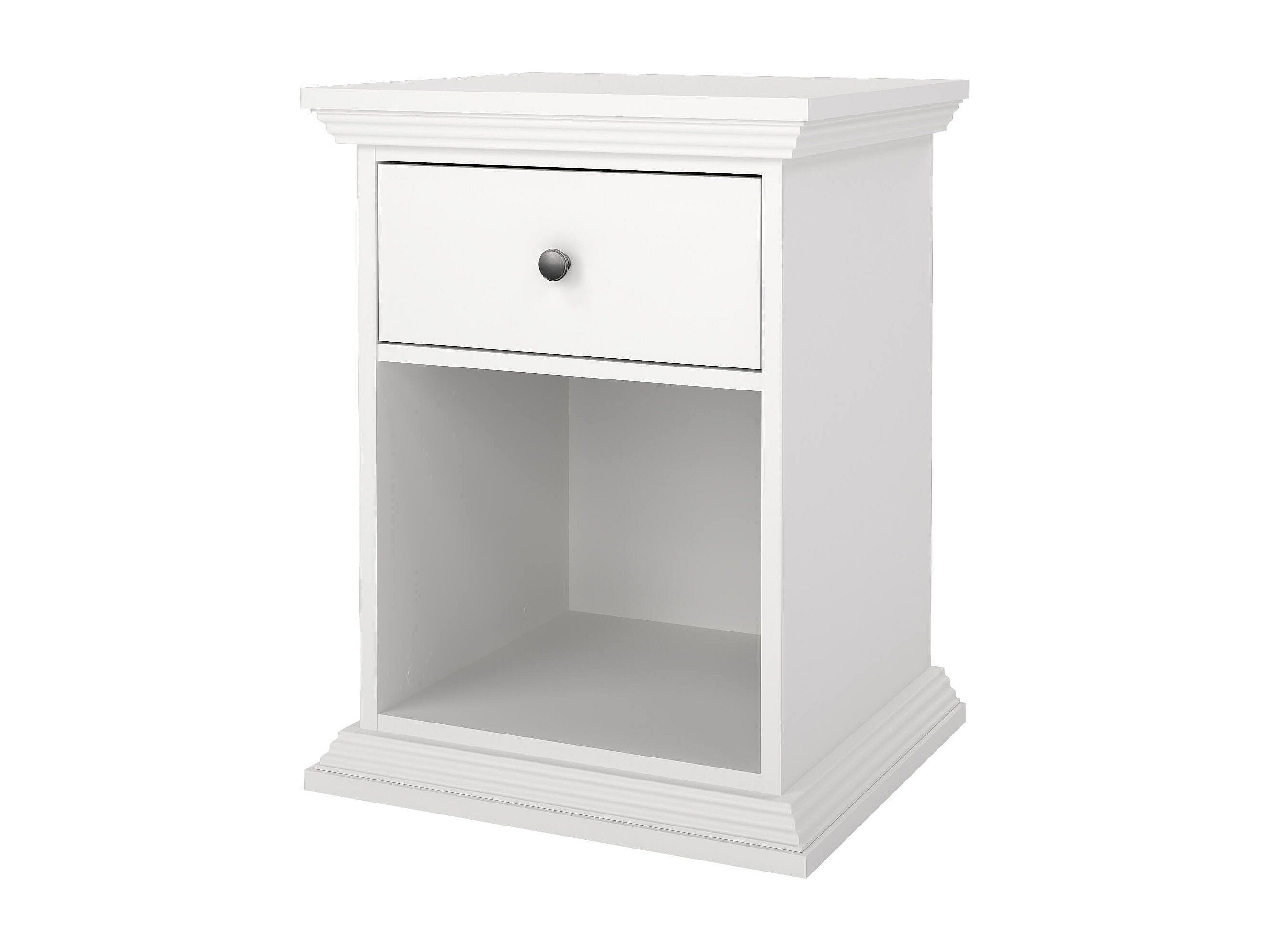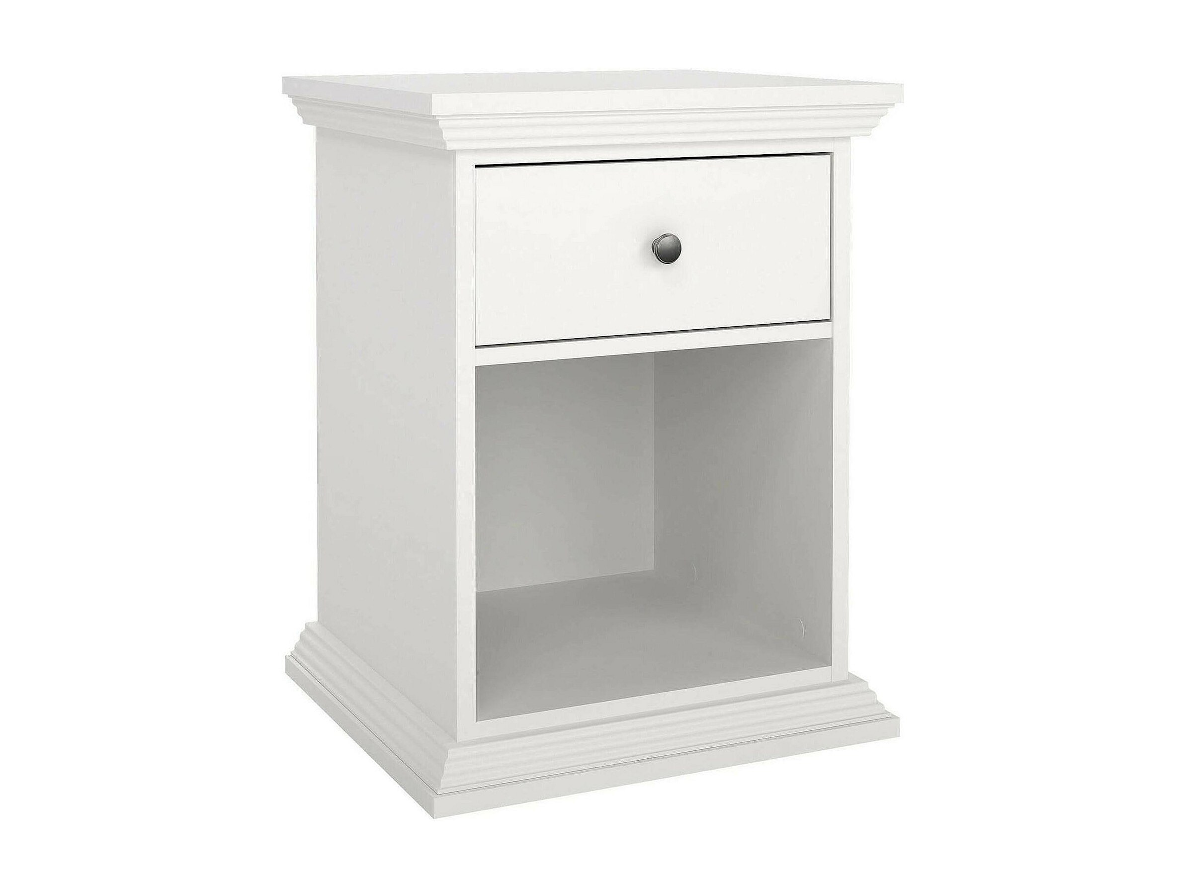 Chevet Drrahman, Commode basse, Table de nuit, Étagère de chevet, 44x40 h70 cm, Blanc