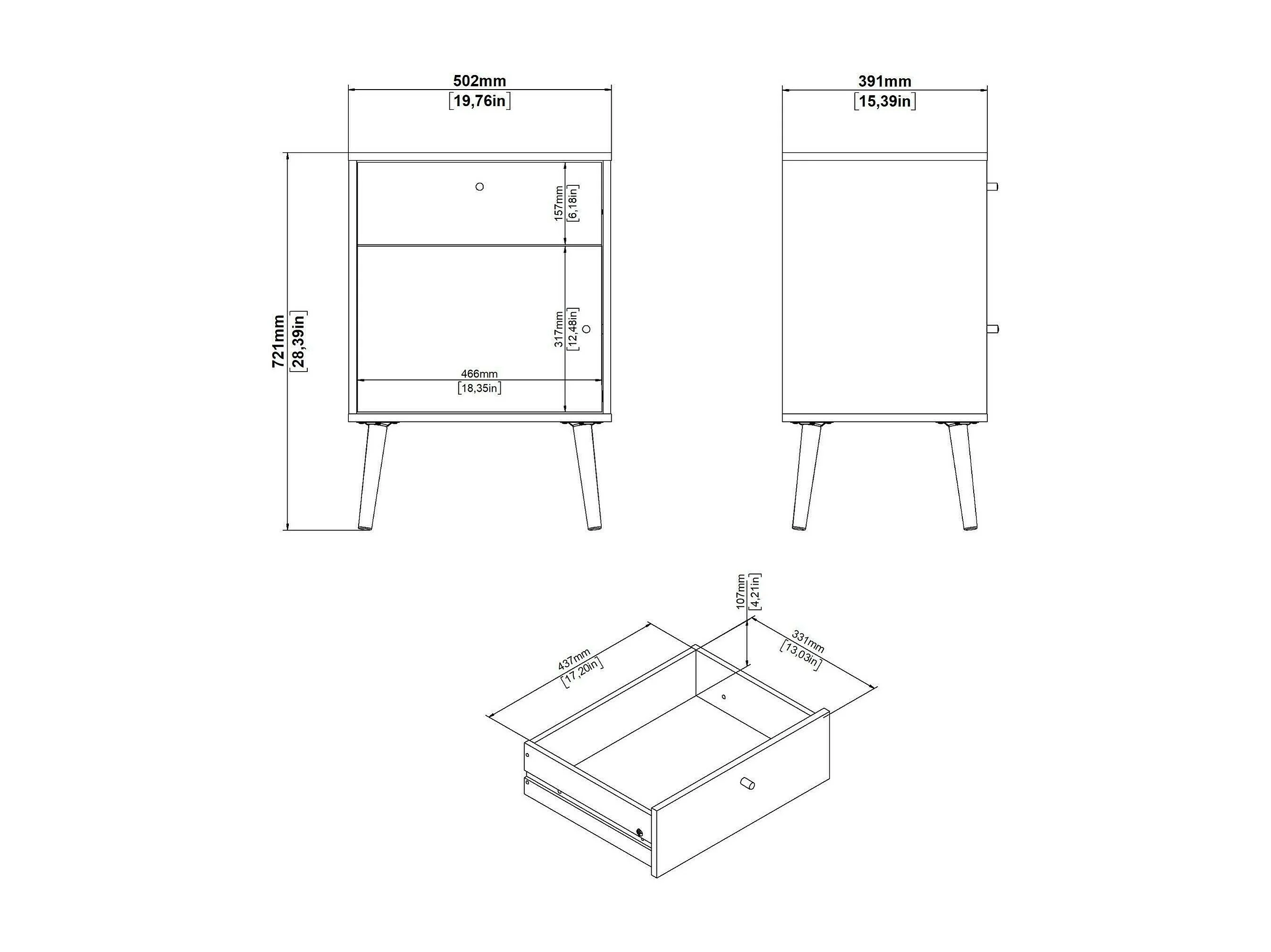 Chevet Dsal, Commode basse, Table de nuit, Étagère de chevet, 50x39 h72 cm, Gris
