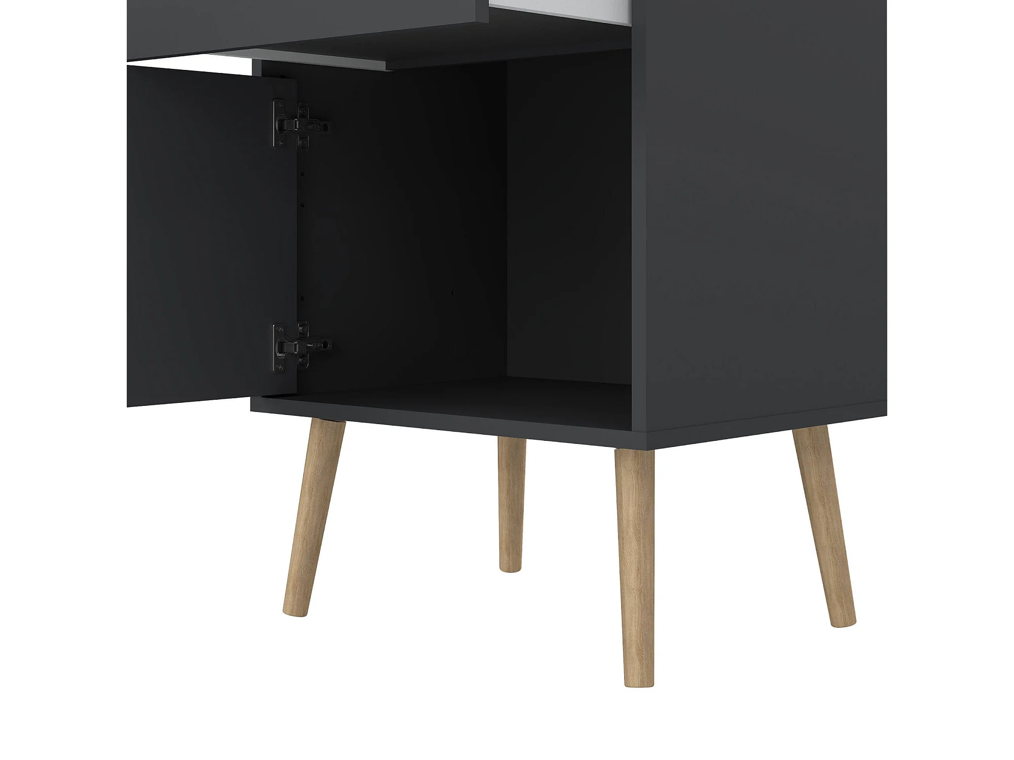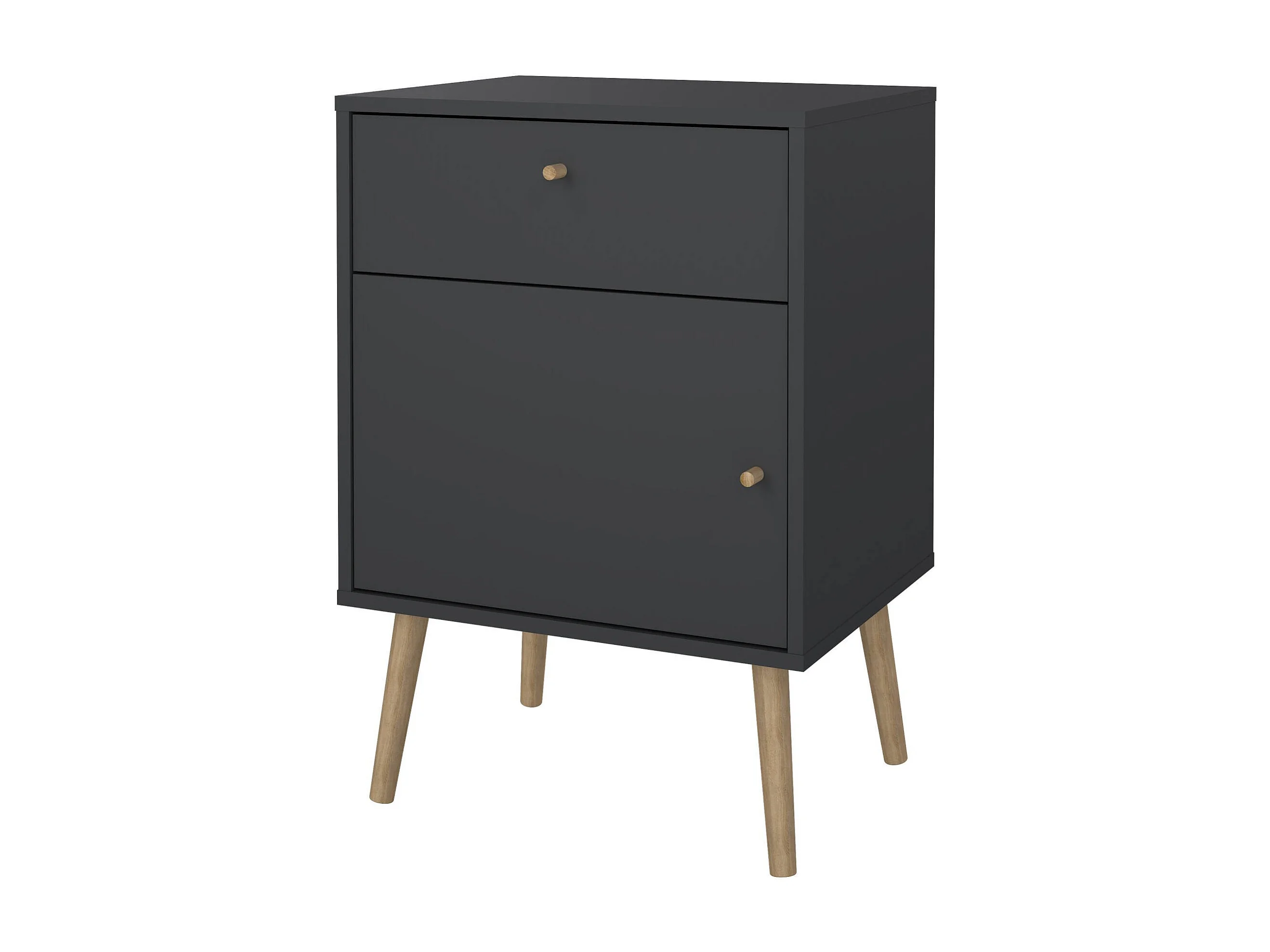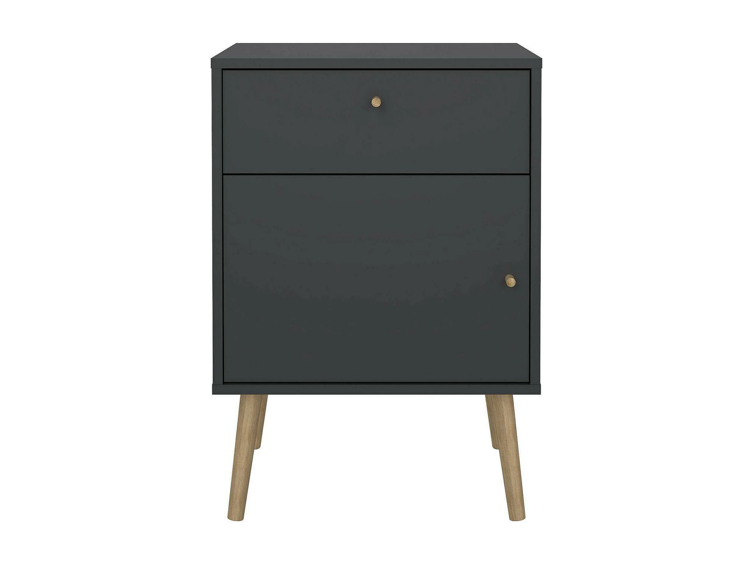 Chevet Seraph, Commode basse, Table de nuit, Étagère de chevet, 56x40h51 cm, Noyer et Anthracite
