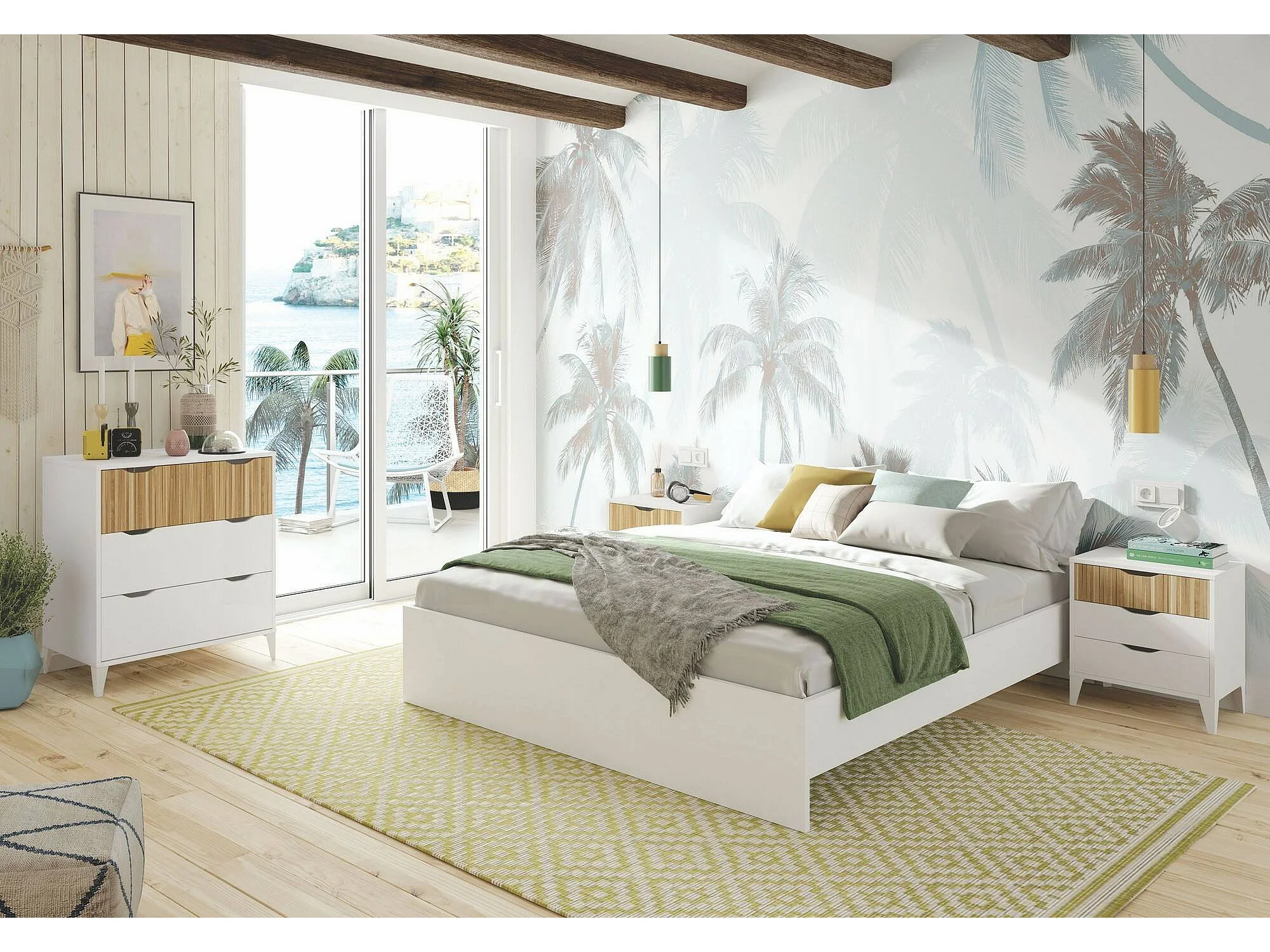 Chevet Dzoe, Commode basse, Table de nuit, Étagère de chevet, 44x33 h50 cm, Blanc et Chêne clair