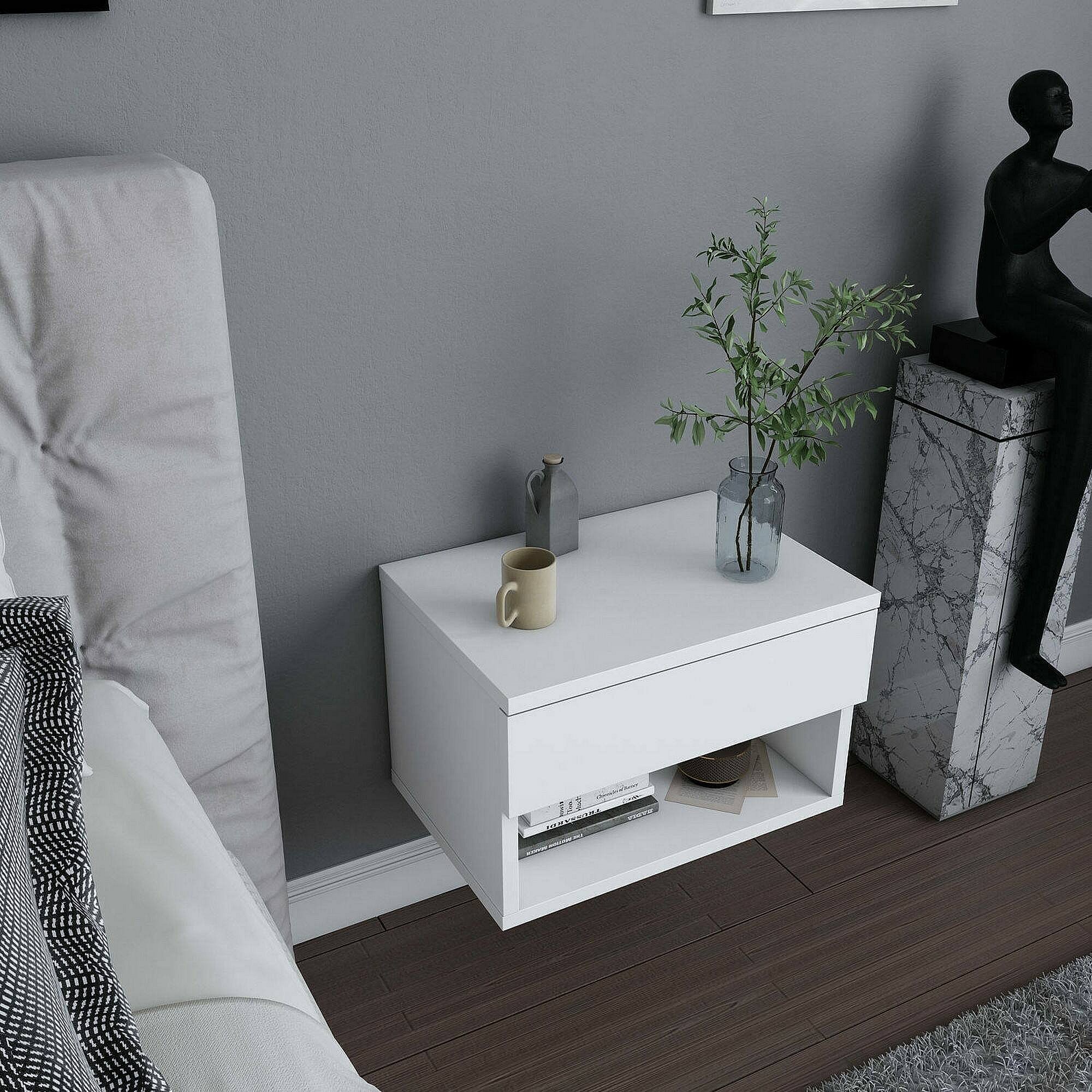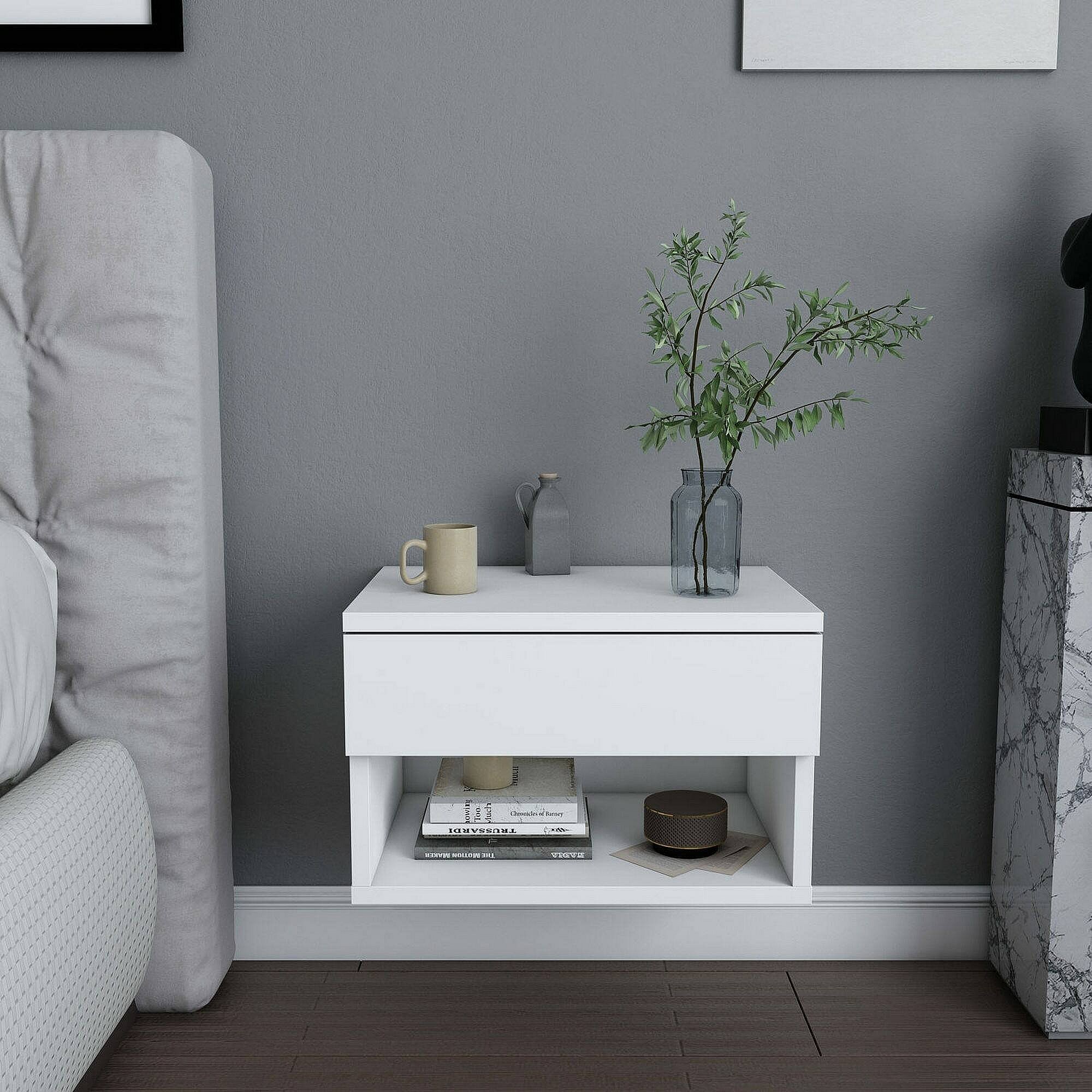 Chevet Pleiades, Commode basse, Table de nuit, Étagère de chevet, 45x29h32 cm, Blanc