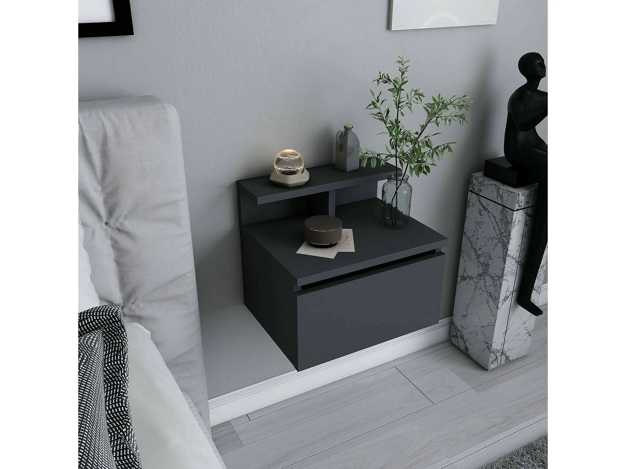 Chevet Pleiades, Commode basse, Table de nuit, Étagère de chevet, 45x29h32 cm, Anthracite