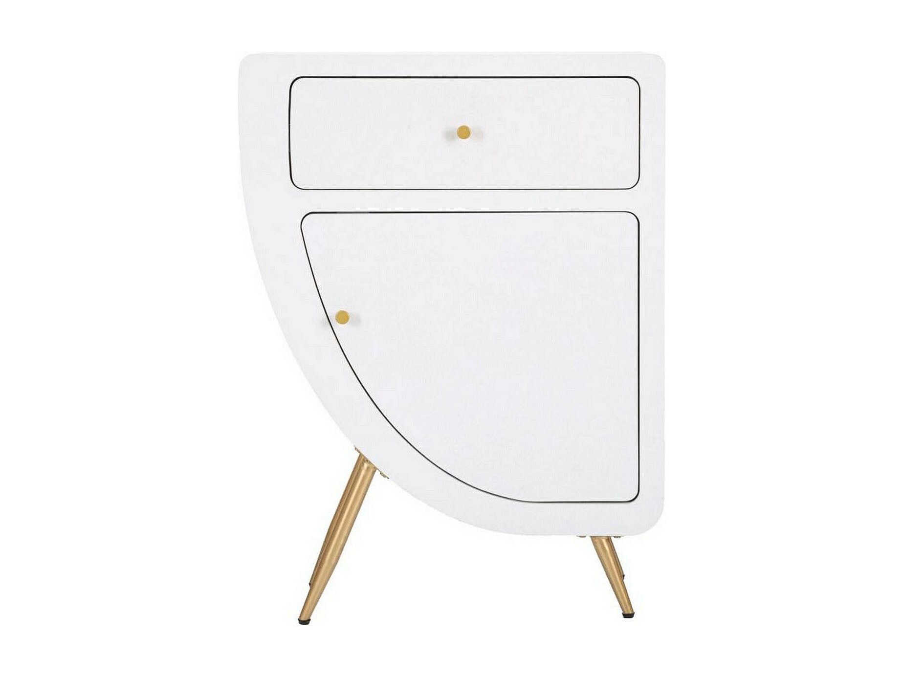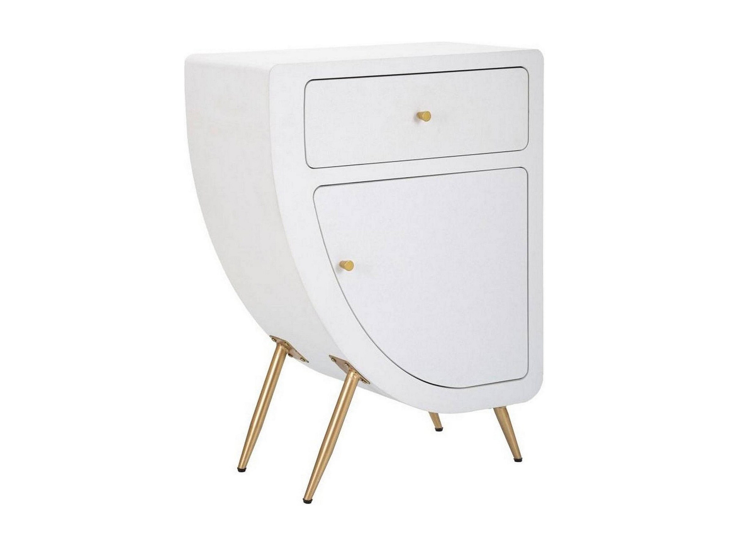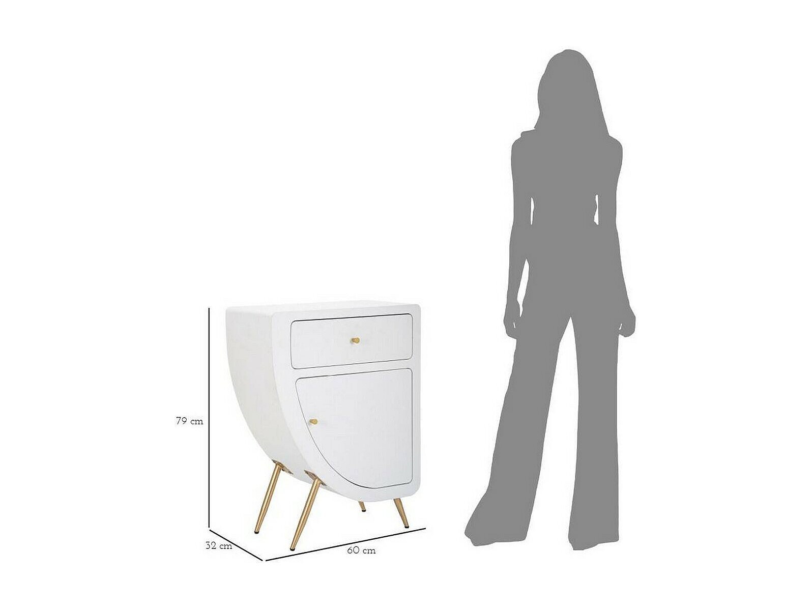 Chevet Suze, Commode basse, Table de nuit, Étagère de chevet, Blanc et Or, 60x32 h79 cm