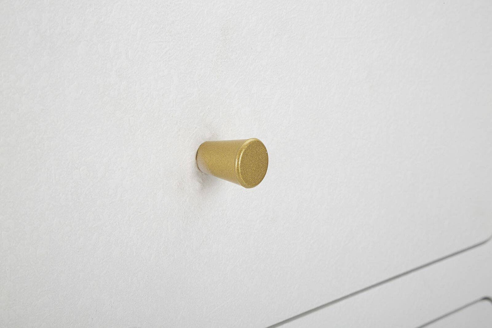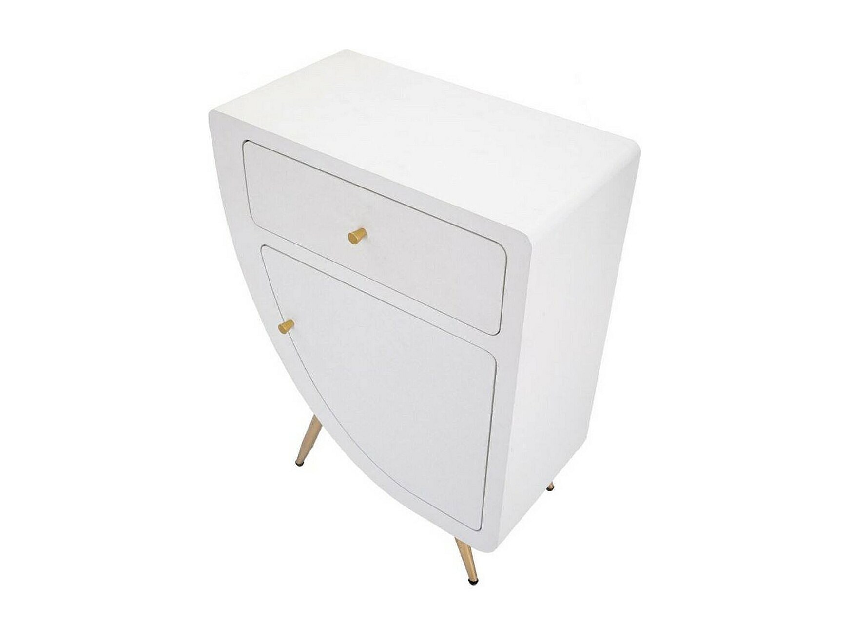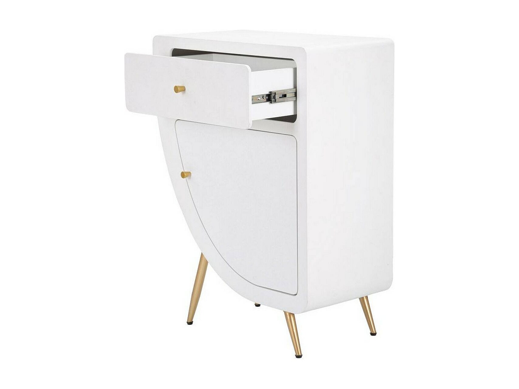 Chevet Suze, Commode basse, Table de nuit, Étagère de chevet, Blanc et Or, 60x32 h79 cm