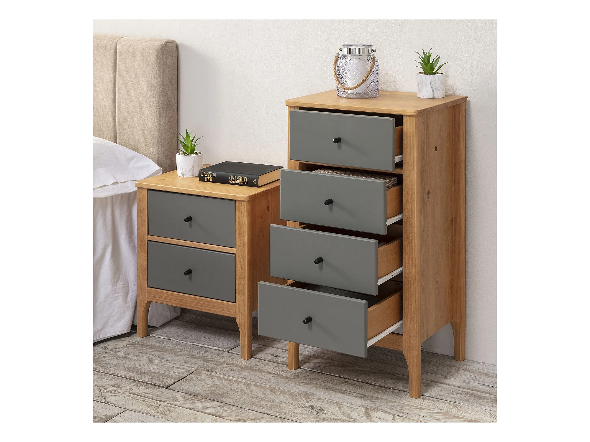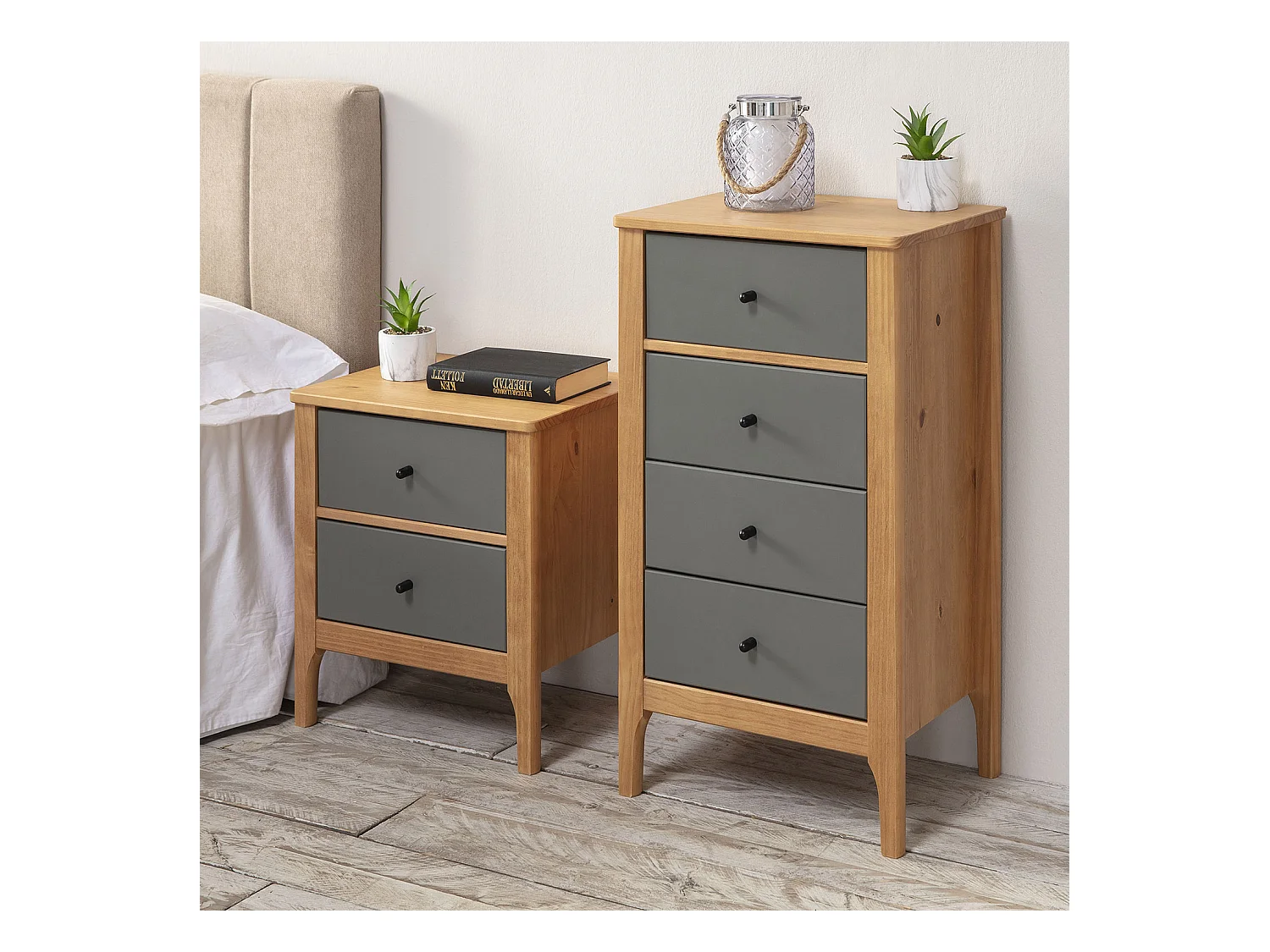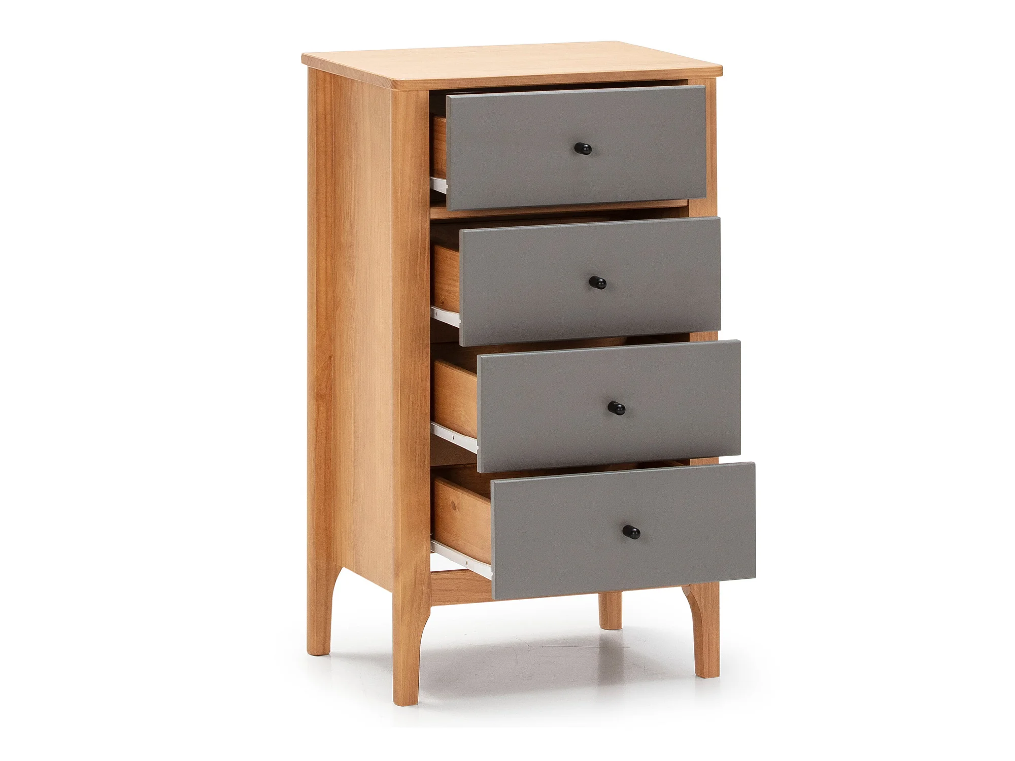 Chiffonnier Nuit 4 tiroirs Luca dans les tiroirs Chêne/Gris, 46 cm Longueur