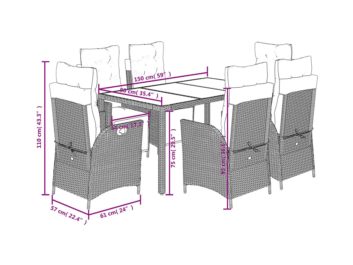 Great Bend Ensemble à manger de jardin coussins 7pcs Noir Résine tressée