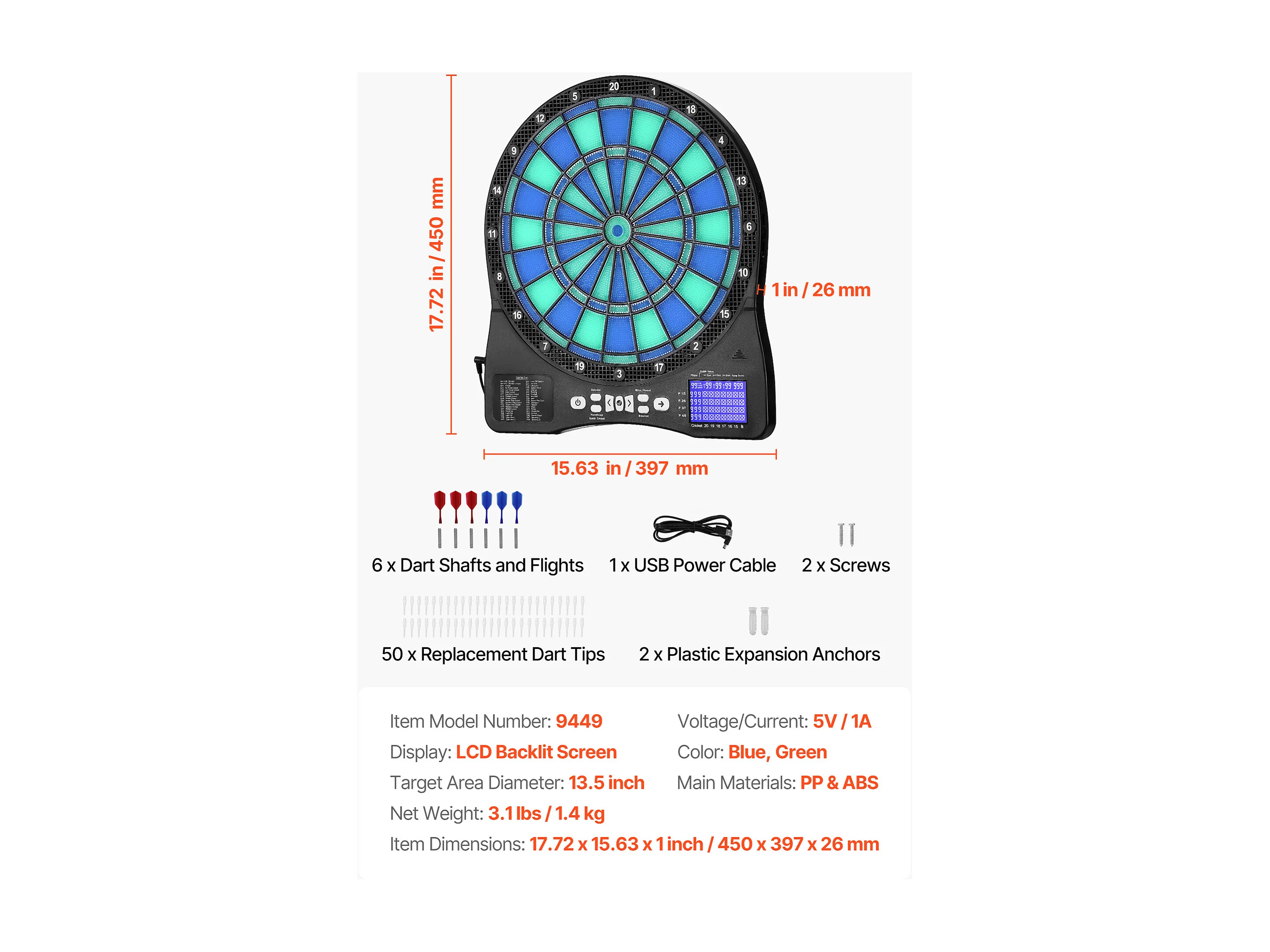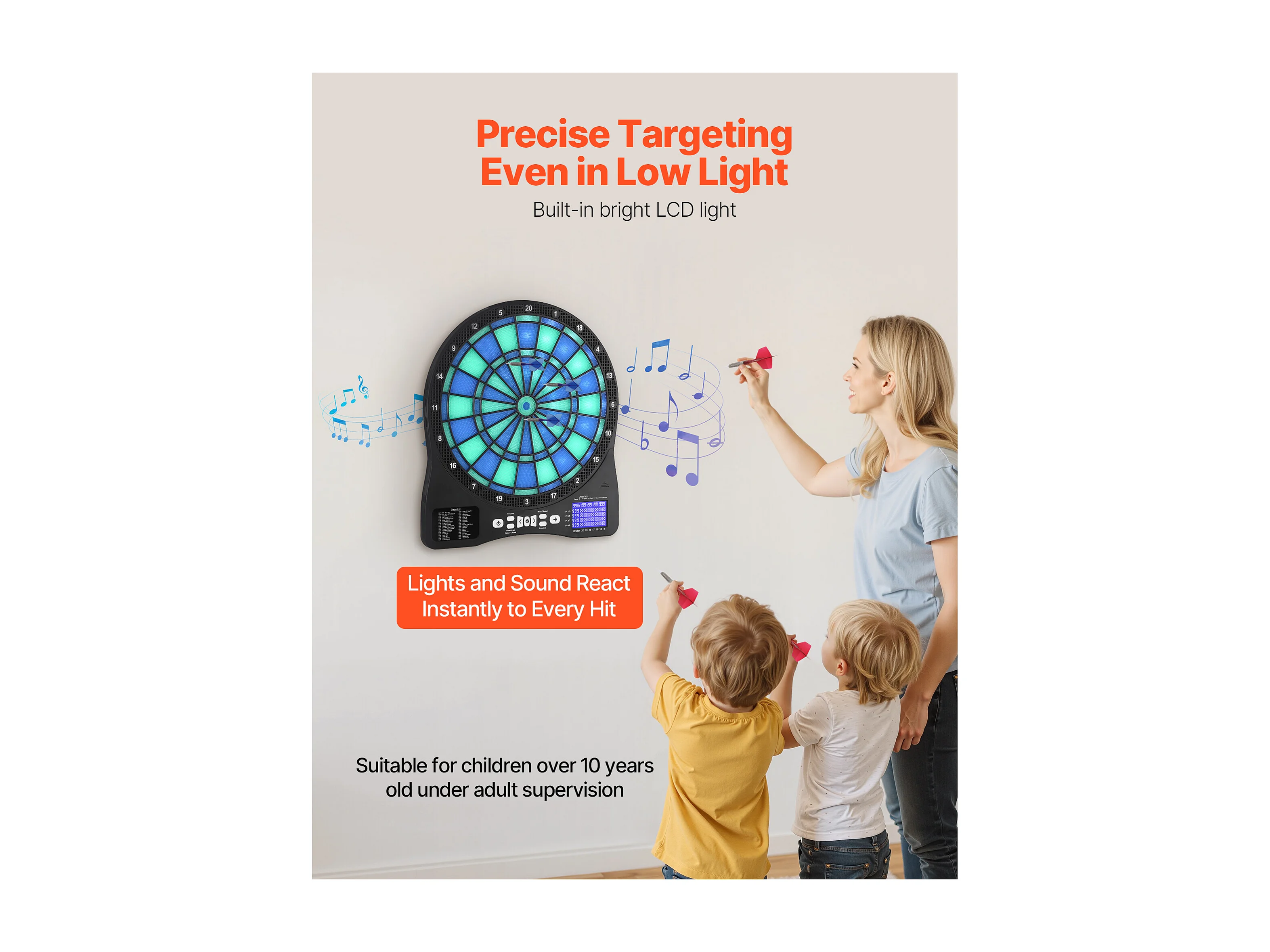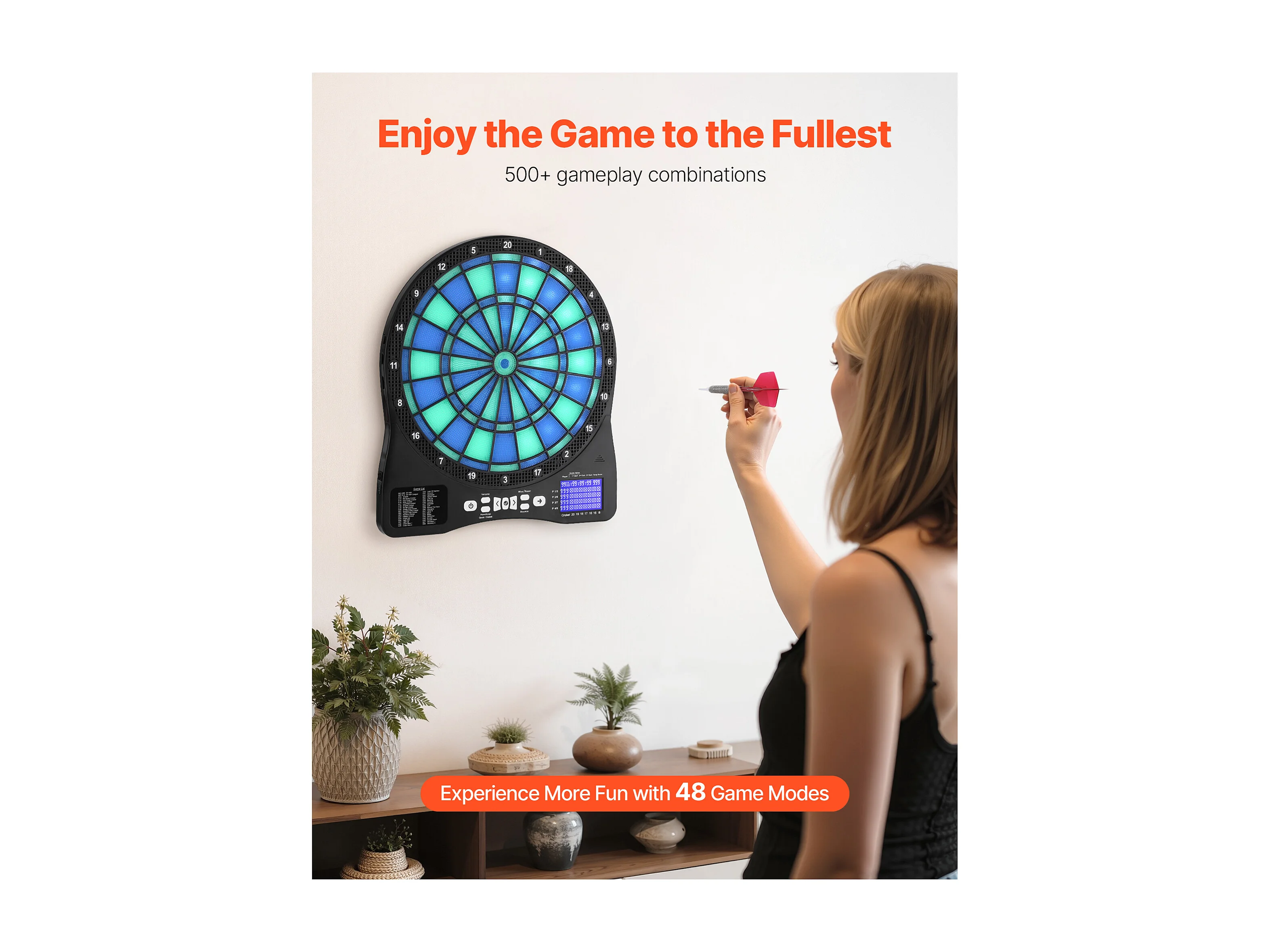 Cible de Fléchettes Électronique SucceBuy pour 8 Joueurs, Planche à Fléchettes Éclairée par LED avec 48 Jeux et Plus de 500 Variantes, 6 Tiges de Fléchette