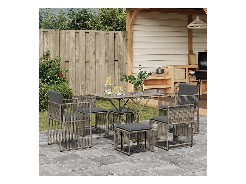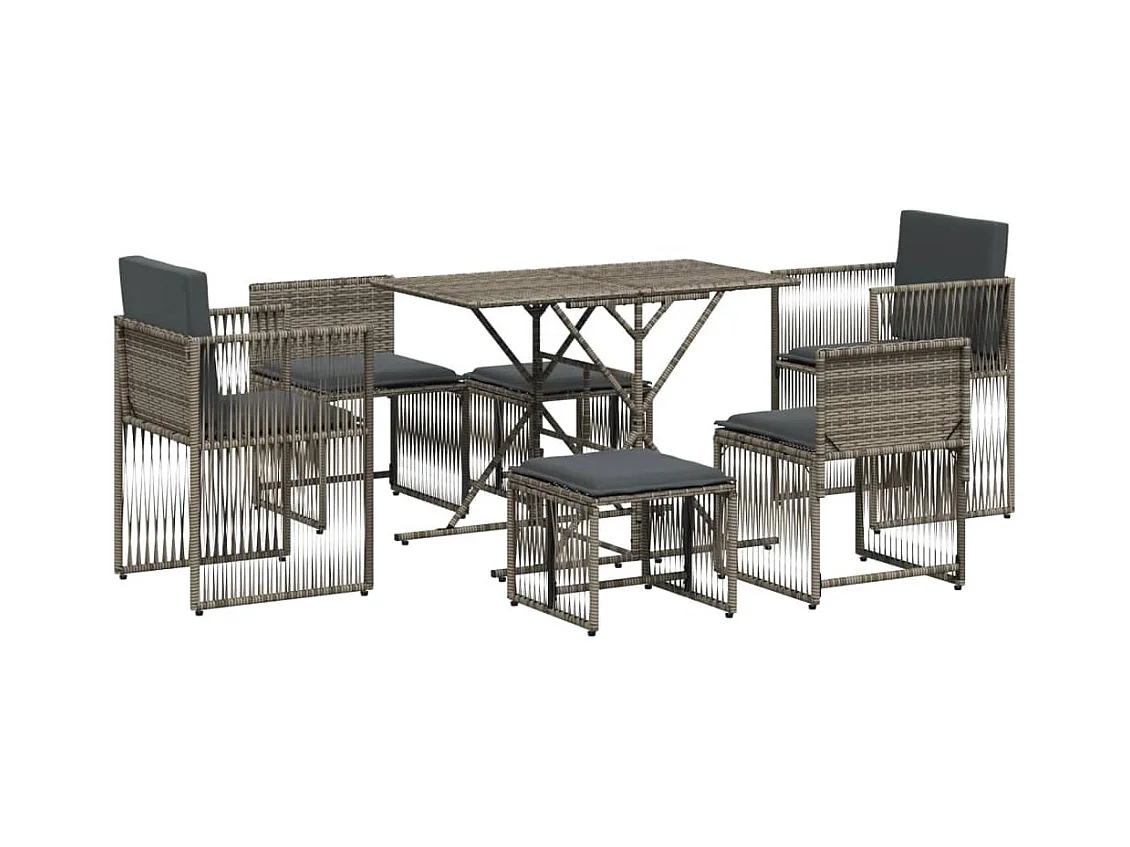 Elviraa Ensemble à manger de jardin et coussins 7 pcs gris rotin