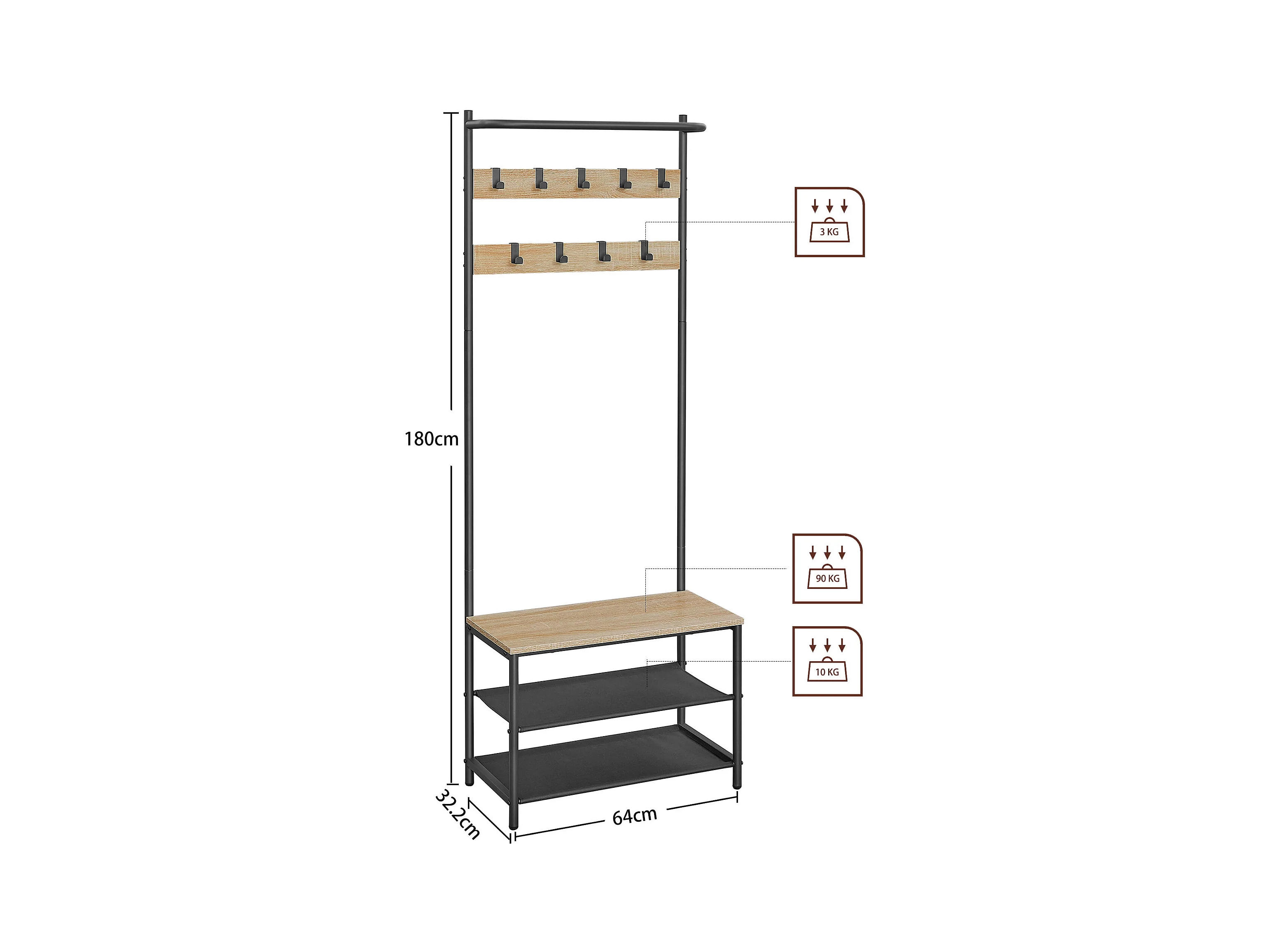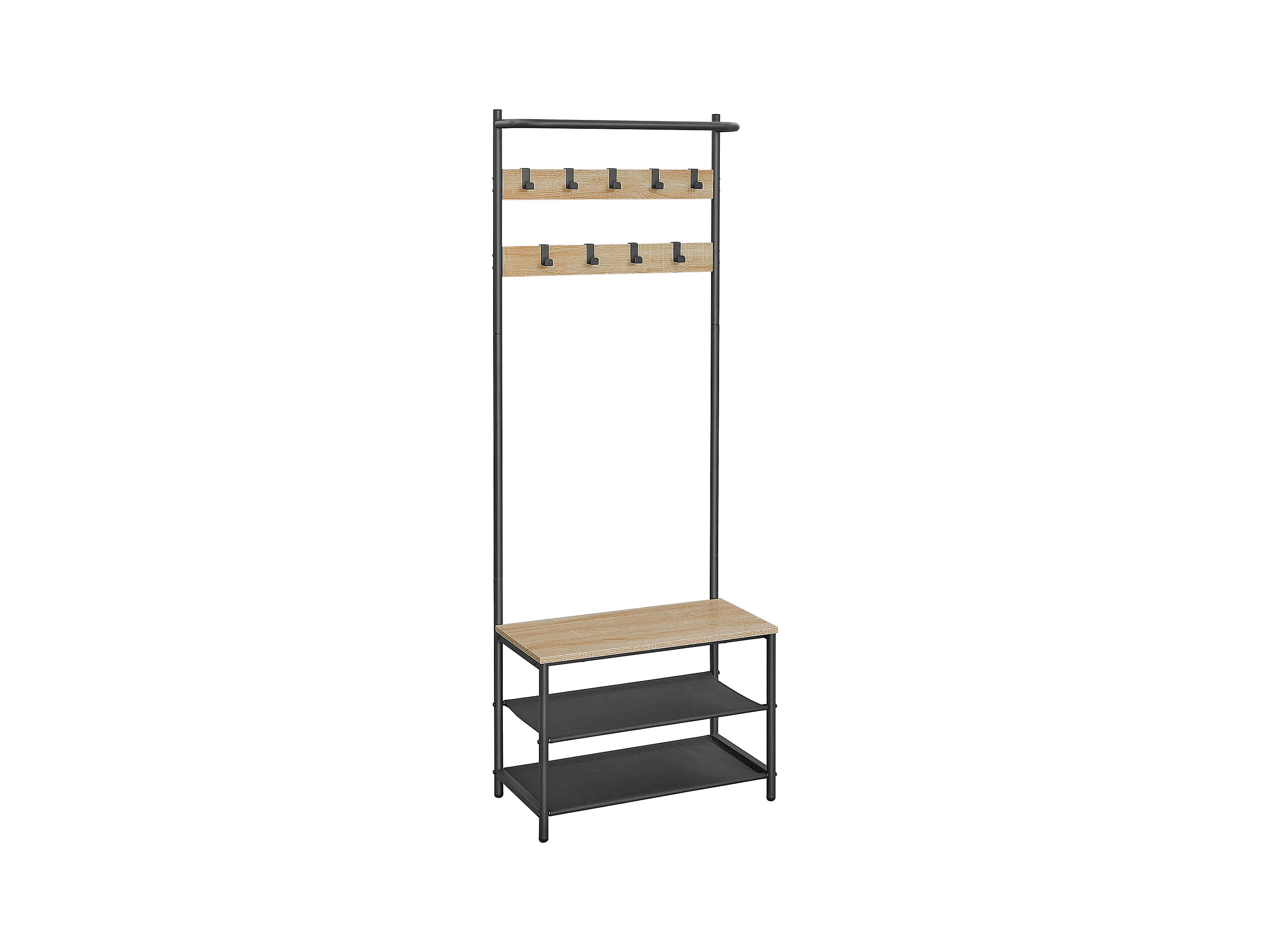 Porte-manteau Valora avec siège et étagères à chaussures – Marron rustique et noir