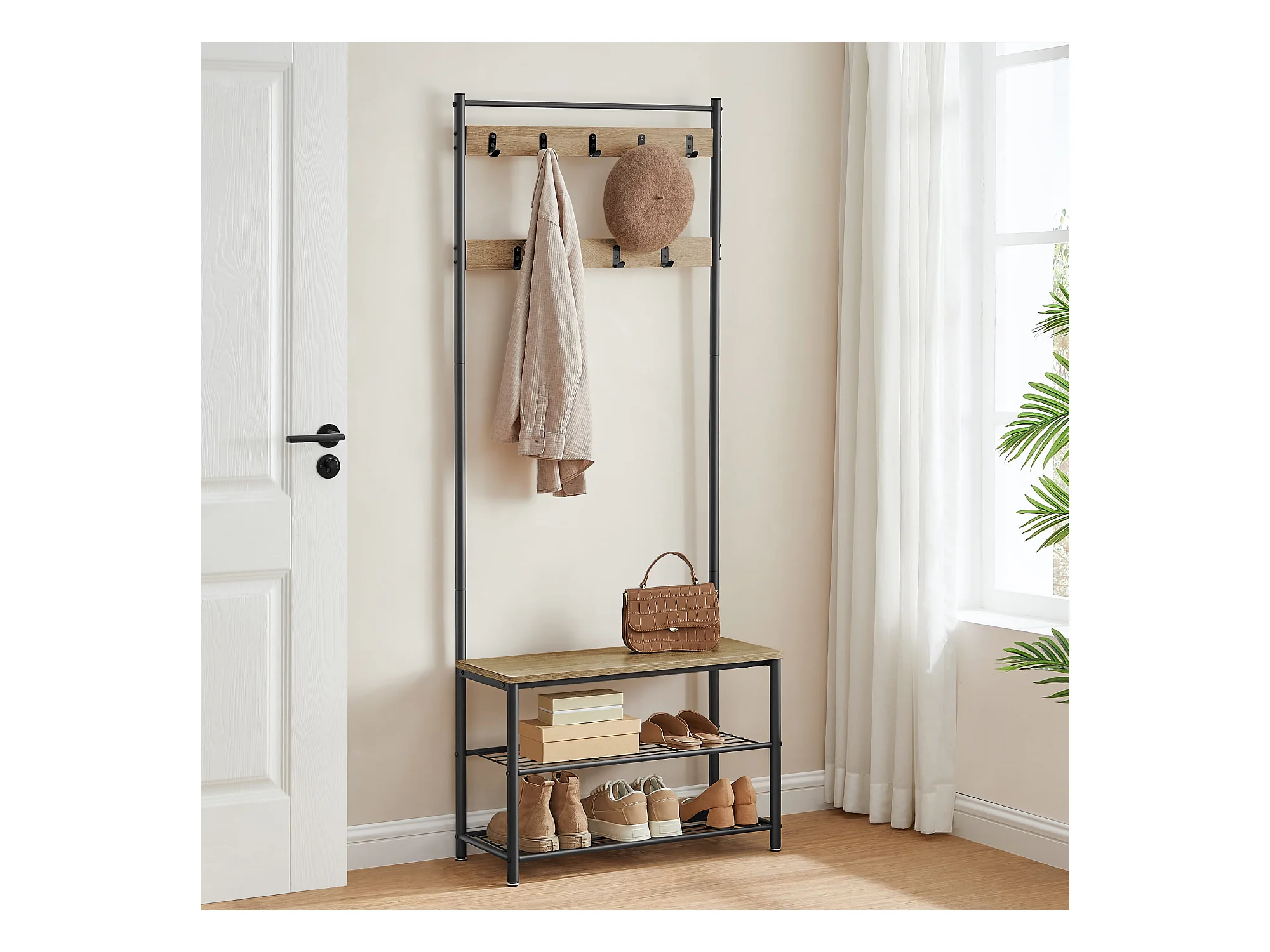 Cintre à vêtements Valora – Organiseur de couloir moderne en chêne Sonoma