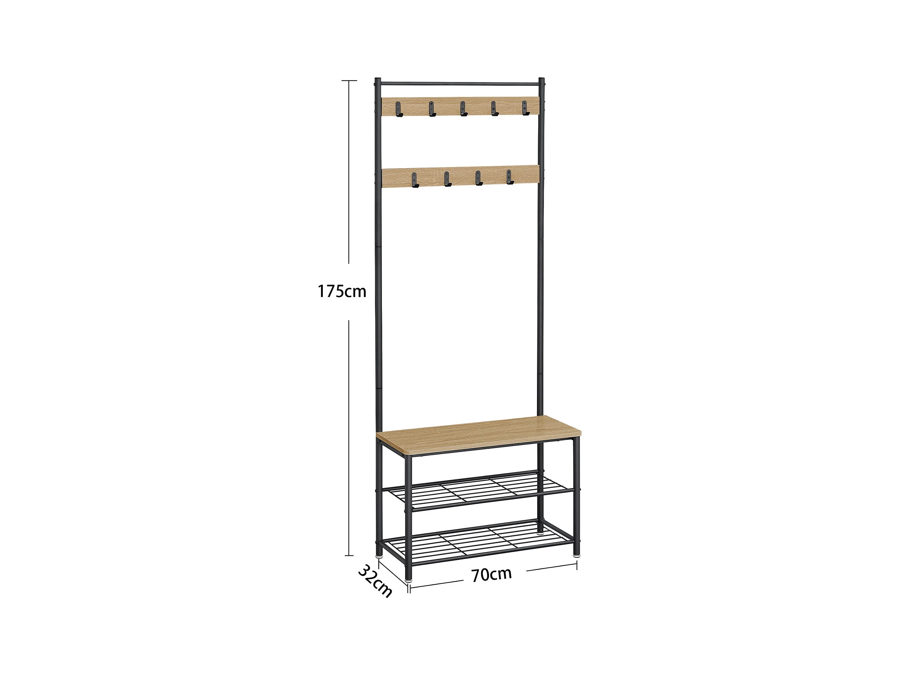 Porte-manteau Valora avec siège et 2 étagères à chaussures – Chêne Sonoma