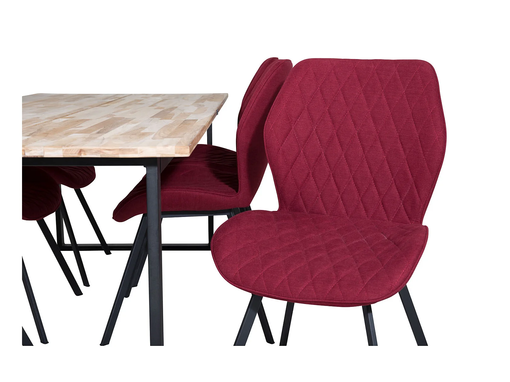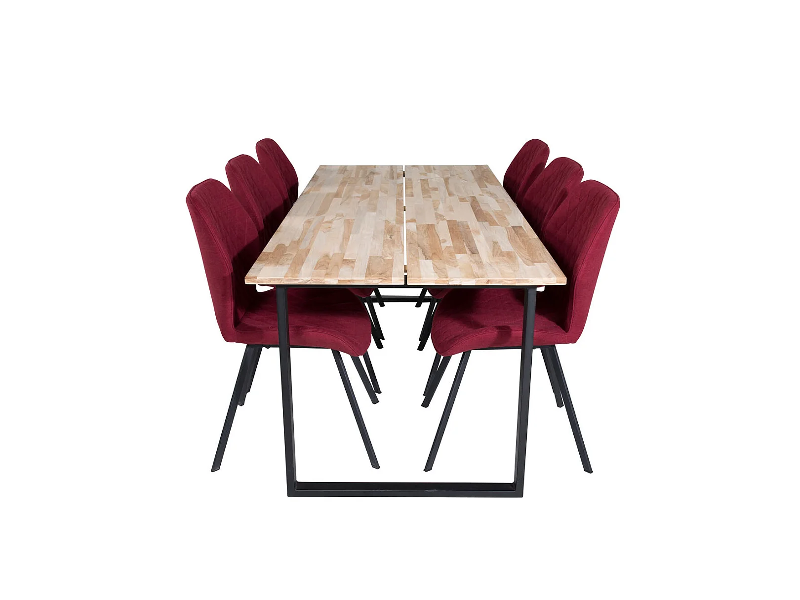 CirebonBL ensemble table, table teck et 6 Gemma chaises rouge.