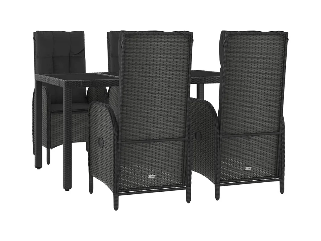 Necdet Ensemble à manger de jardin coussins 5pcs Noir Résine tressée