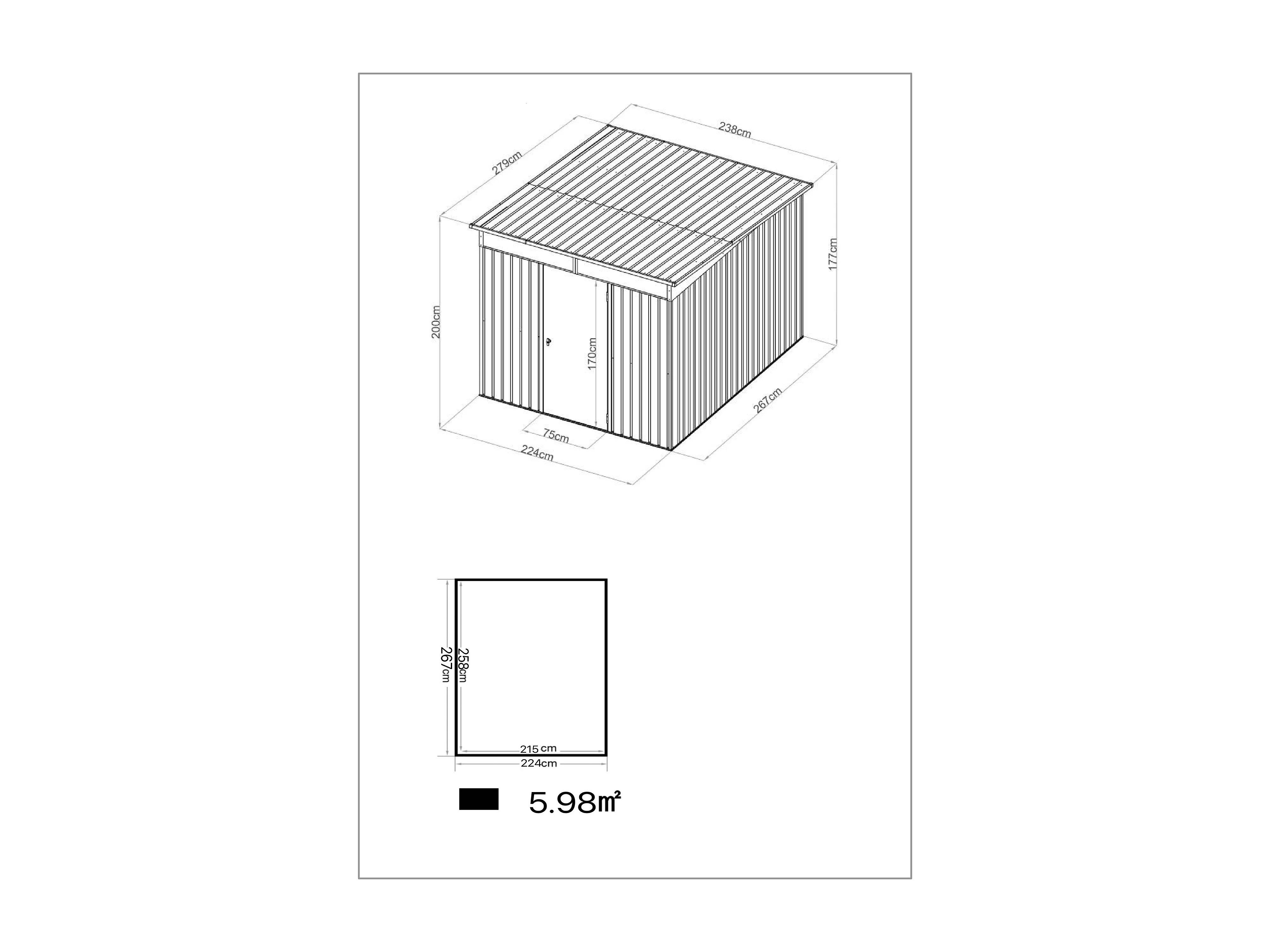 Abri de jardin métal en acier galvanisé - 0,4 mm - gris anthracite 6,6 m² - CLAFTON