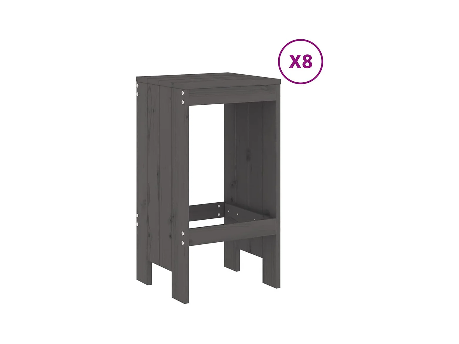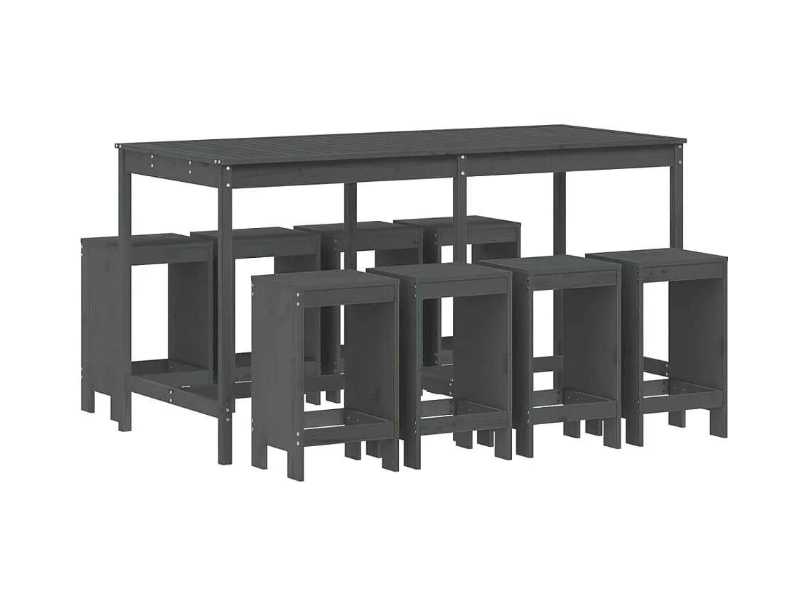 Lucien-Joseph-René Ensemble de bar de jardin 9 pcs gris bois de pin massif