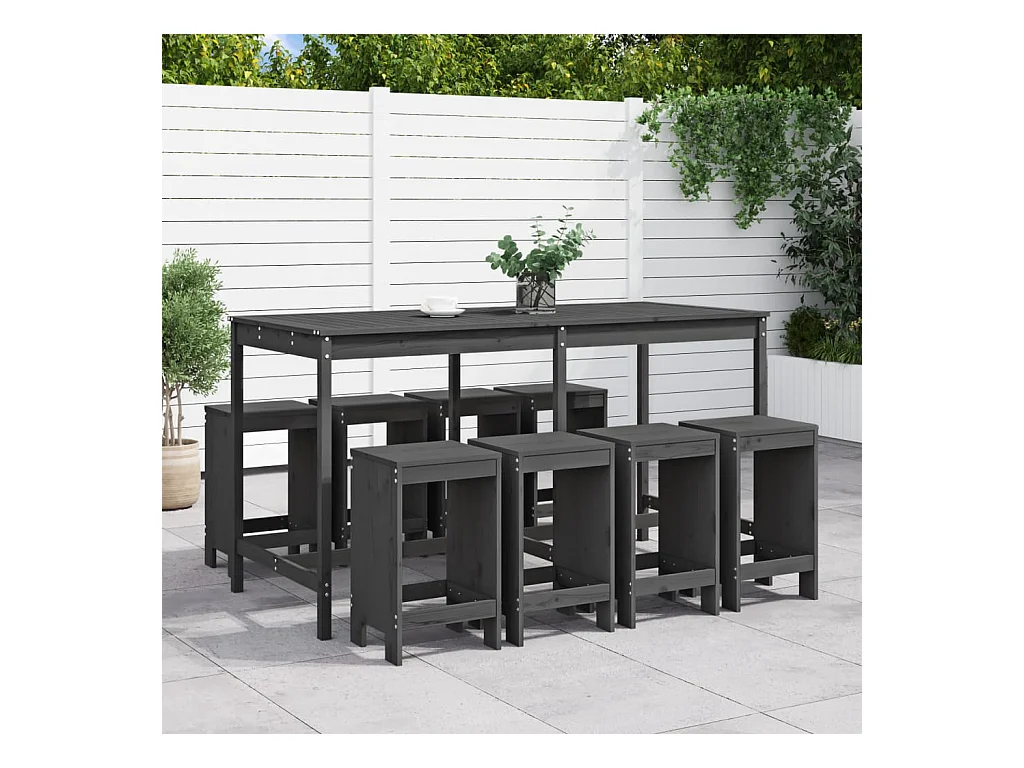 Henri-Gabriel Ensemble de bar de jardin 9 pcs gris bois de pin massif