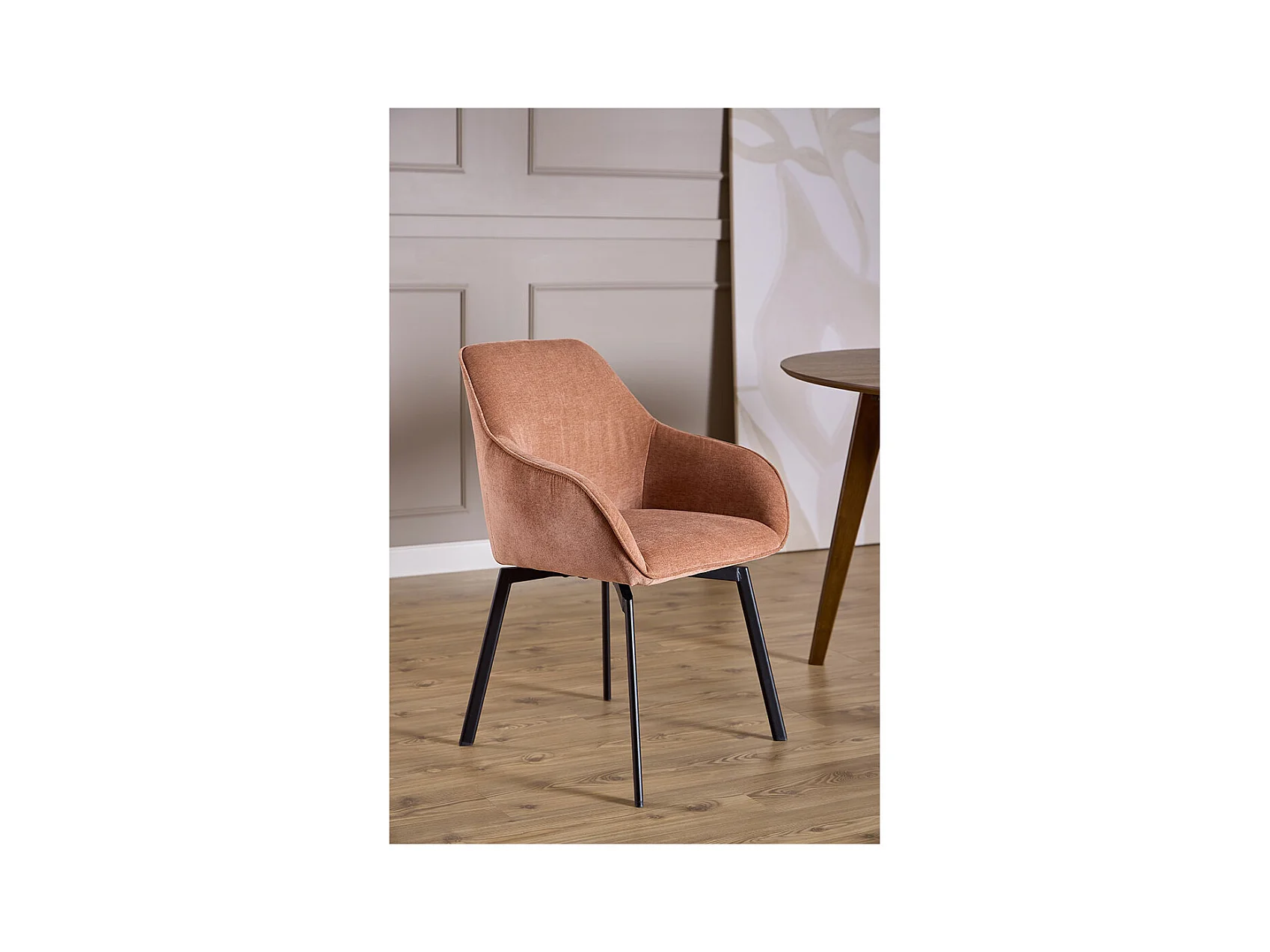 Clara chaise de salle à manger avec accoudoirs chenille marron.