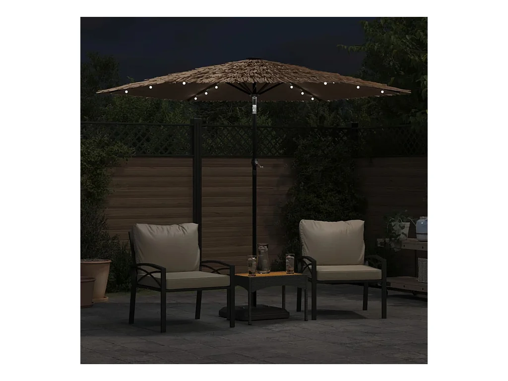 Clark Parasol de jardin avec LED et mât en acier marron 223x223x213cm