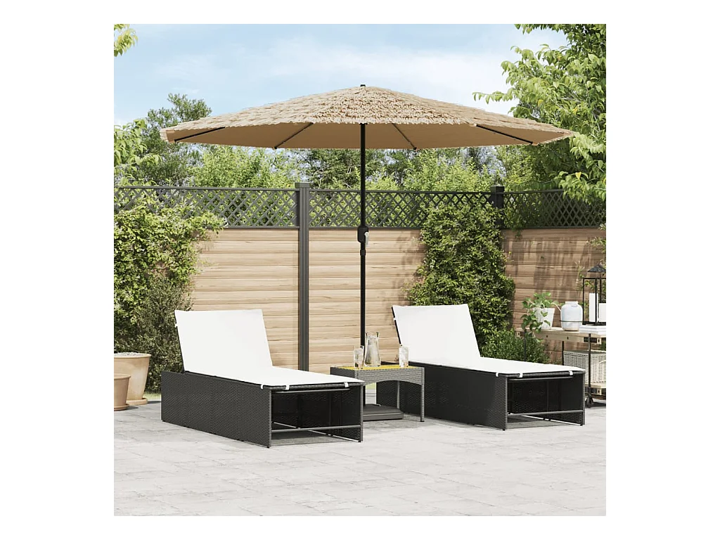 Prudence Parasol de jardin avec LED et mât en acier noir 2x3 m