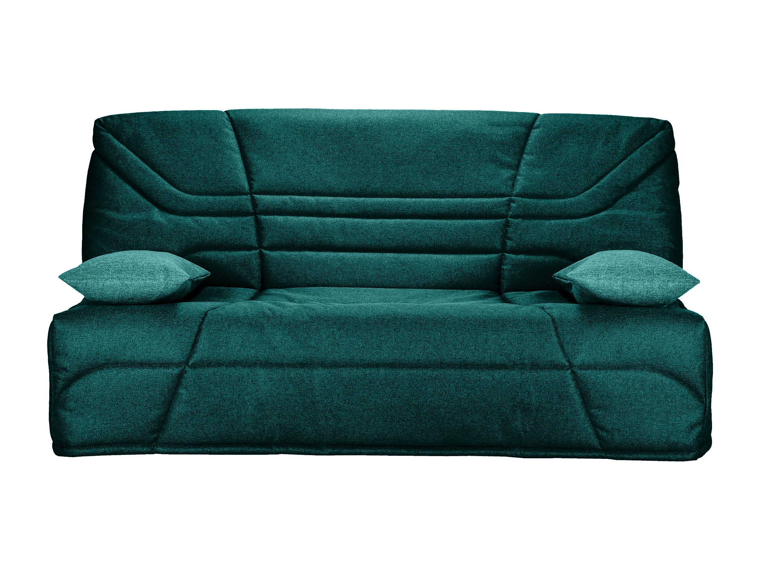 Canapé clic clac tissu avec rangement matelas Bultex 14cm Bakoa 193cm-Couleur Vert emeraude