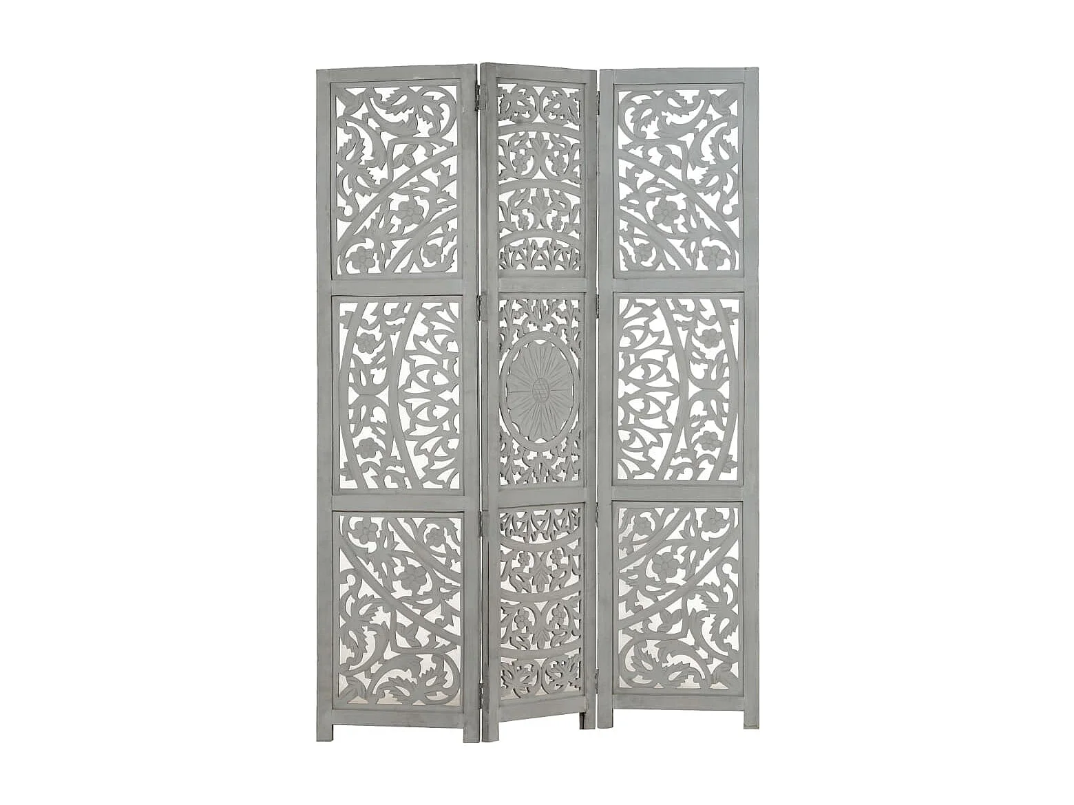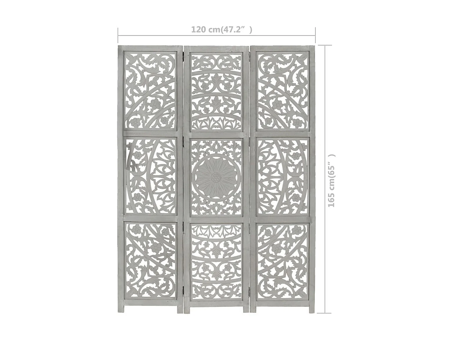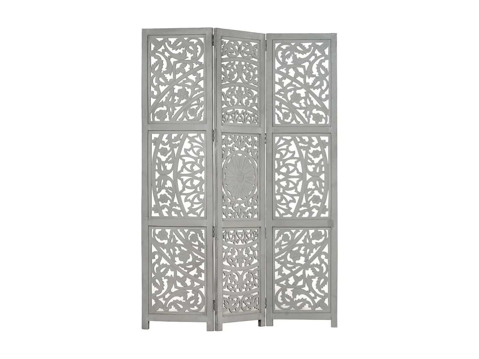 Cloison de séparation 3 panneaux Gris 120x165 cm Bois manguier